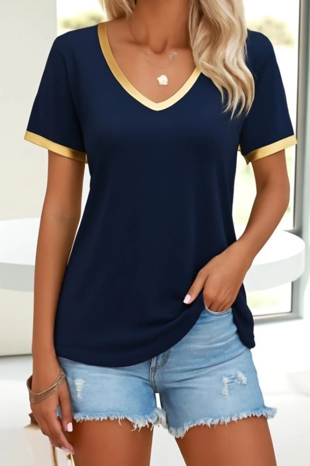 <p>Kadın Kısa Kollu V Yakalı Viskon Bluz</p><br> <p>Modelin Ölçüleri: Boy:165, Kg:55, Göğüs:90, Bel:72, Kalça: 100</p><br> <p>Modelin üzerindeki ürün M/38 bedendir</p><br> <ul> <li>DESEN-Diğerleri</li><li>KALIP-Klasik</li> </ul>