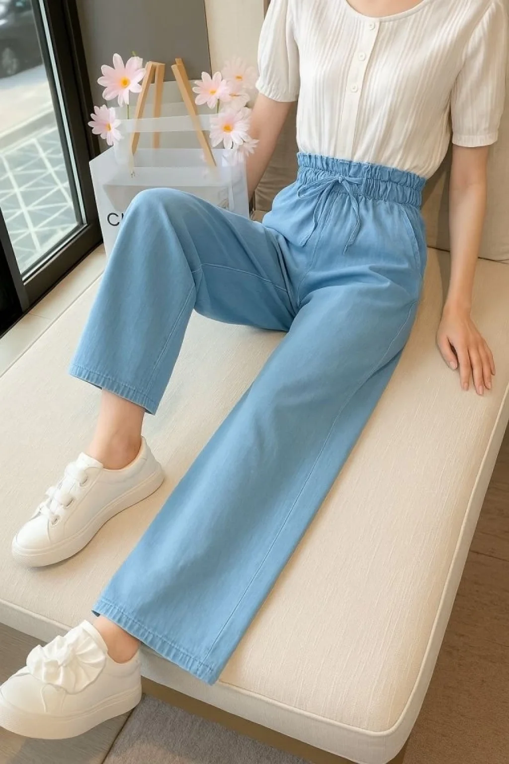 Kadın Yüksek Bel Yanları Volanlı Cepli Sandy Pantolon