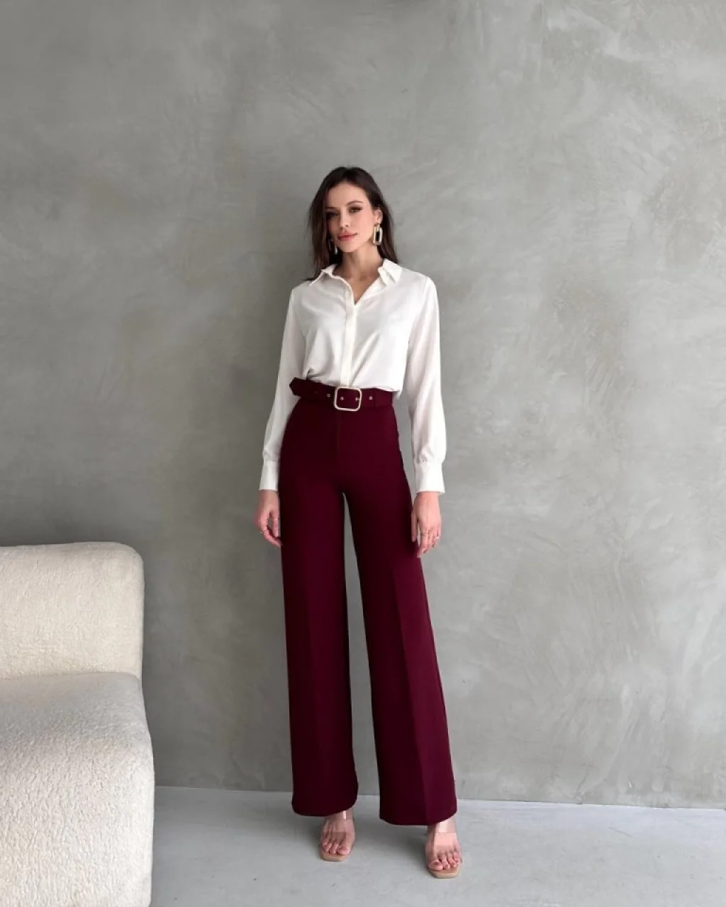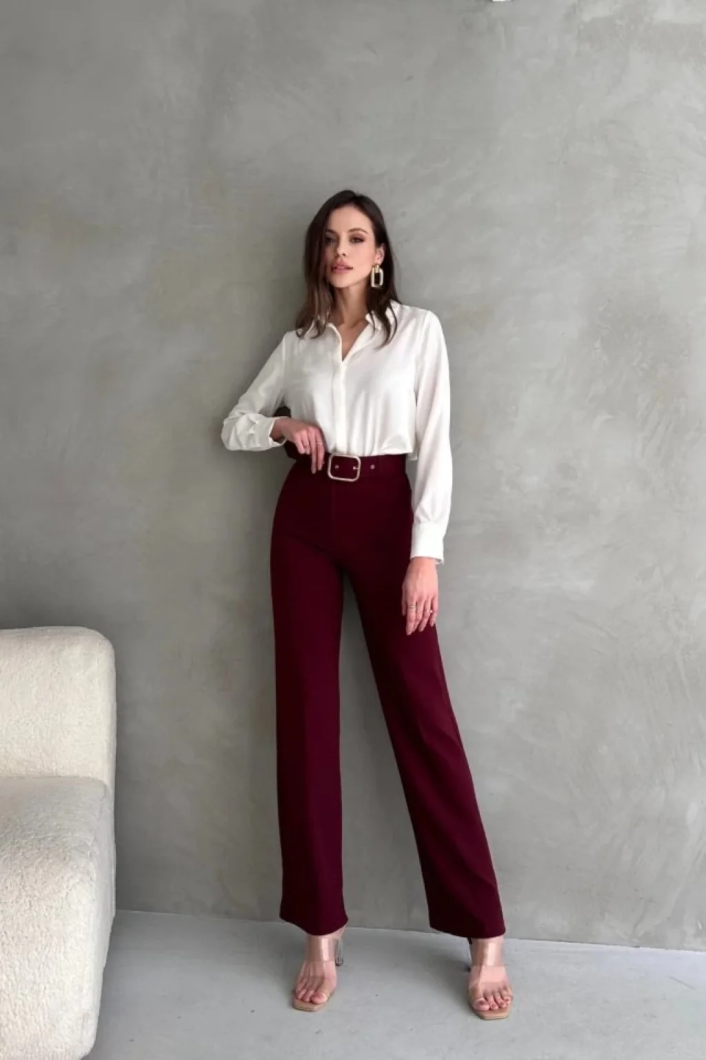 Kadın Beli Zincir Detay Ithal Krep Pantolon