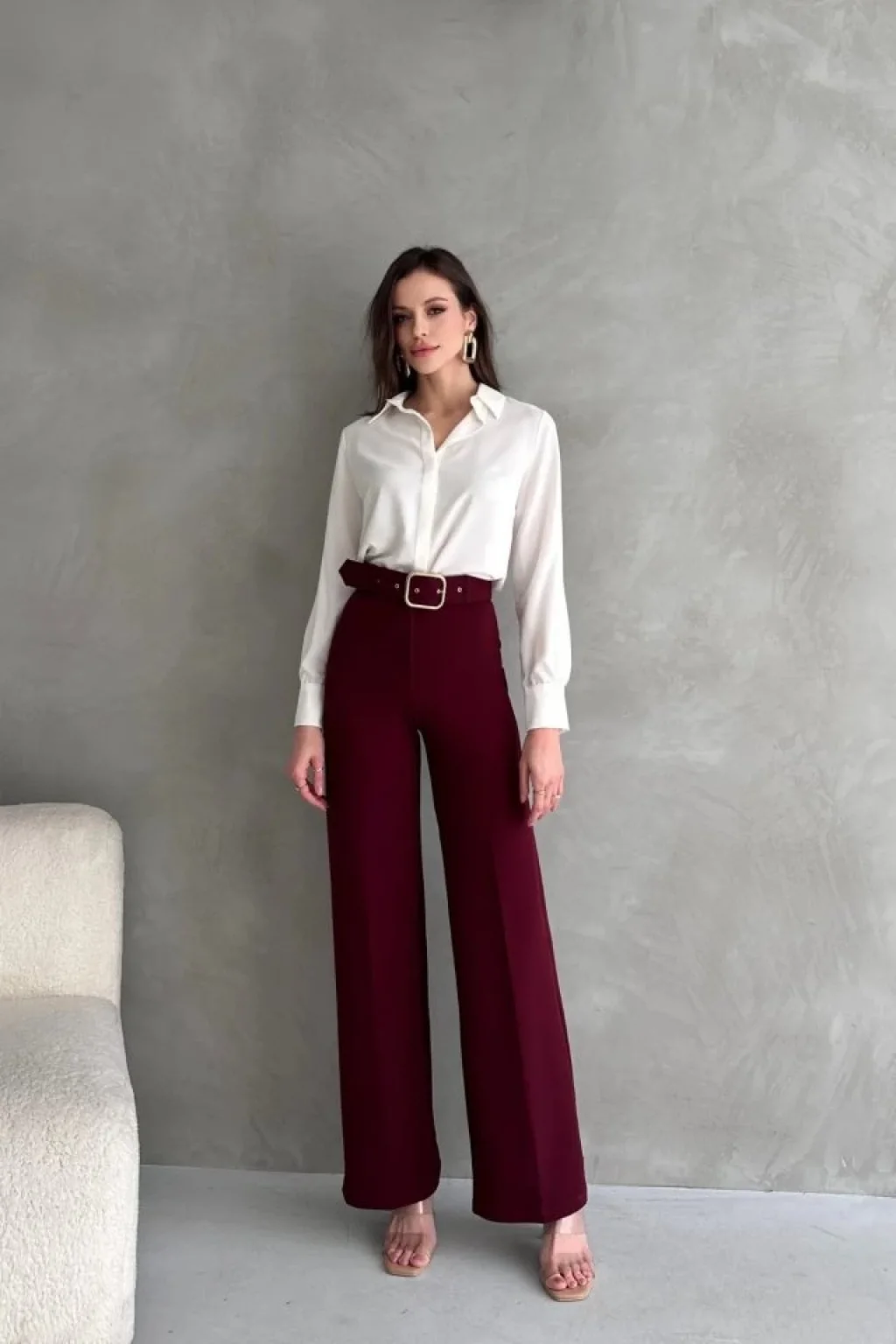 Kadın Yüksek Bel Krep Kumaş Full Likralı Ispanyol Paça Kemer Dahil Pantolon