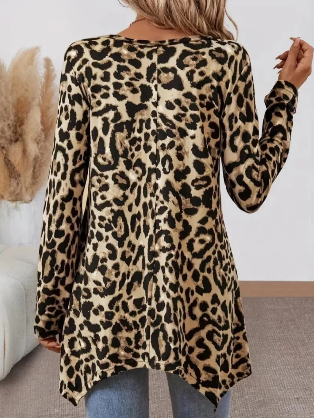 Kadın Uzun Kollu Bisiklet Yaka Leopar Desenli Süprem Bluz