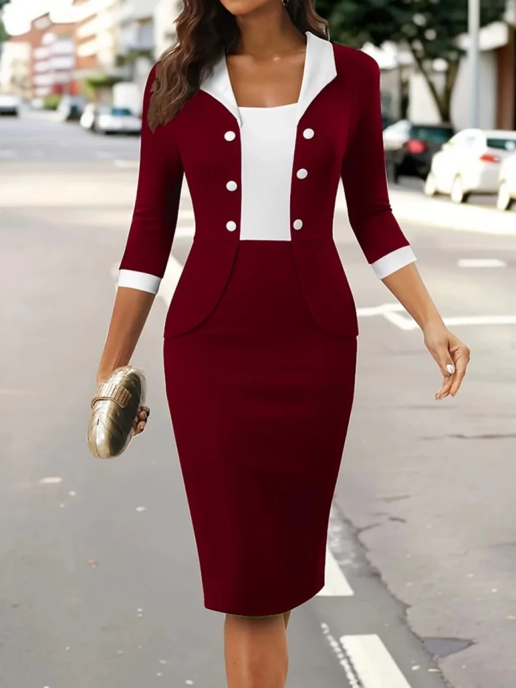 Kadın Truvakar Kol çift Renkli Düğmeli Kısa Ithal Krep Elbise