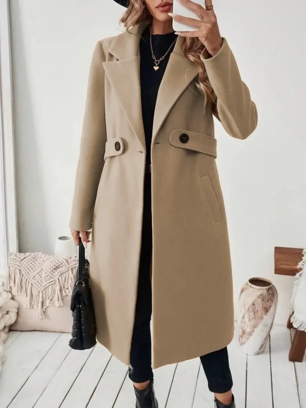 Kadın Uzun Kollu Kırlangıç Yaka önden Düğmeli Kısa Kaşe Kaban