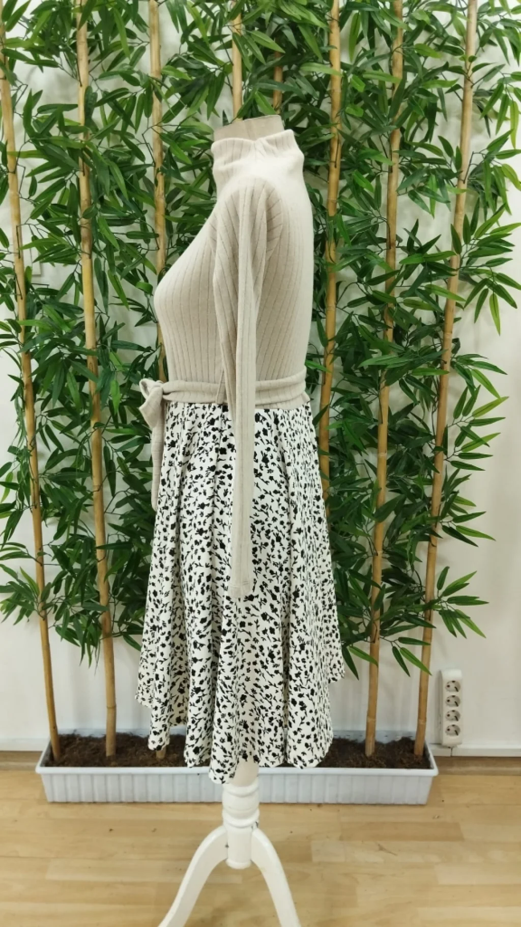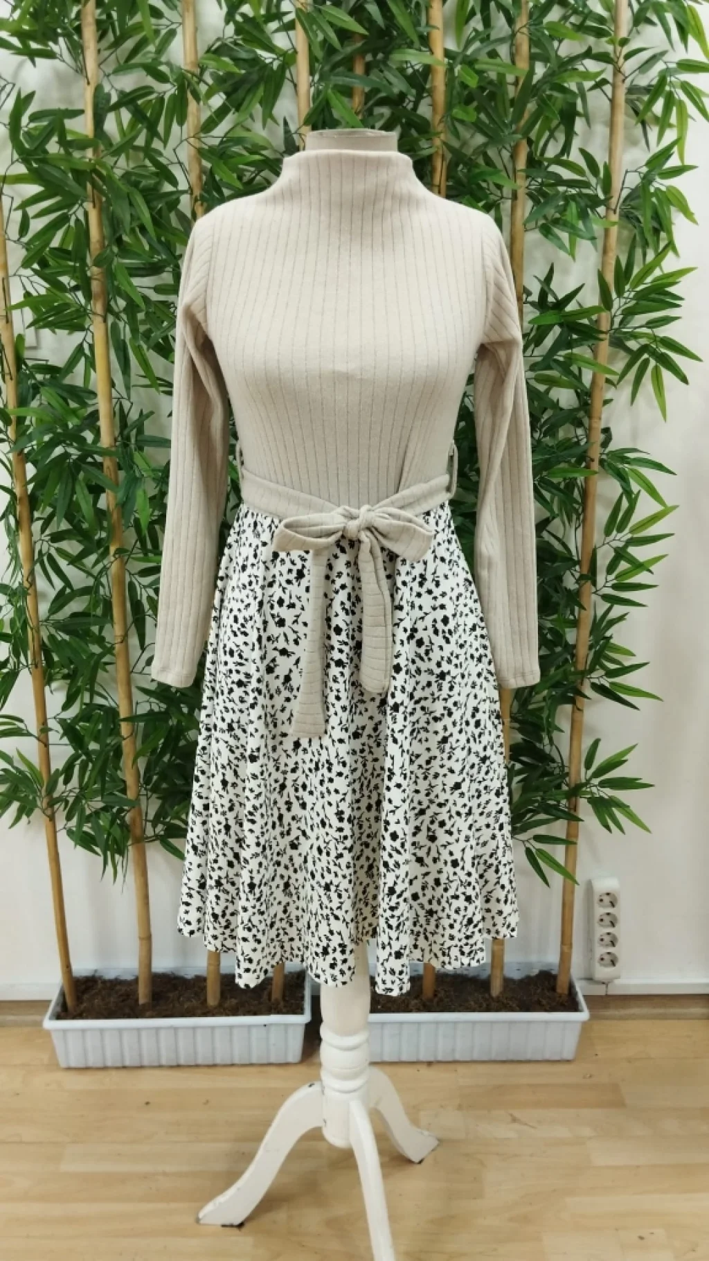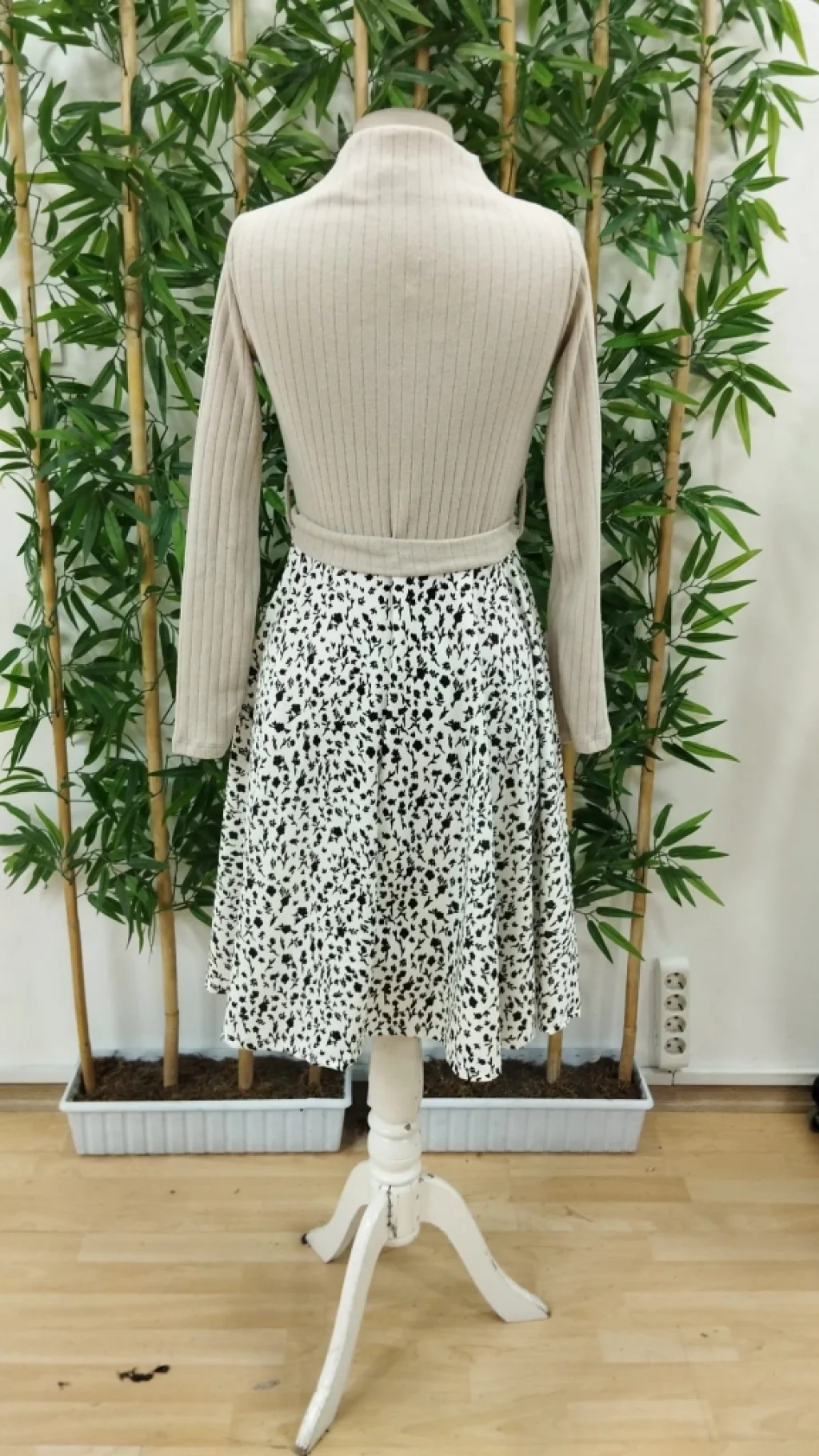 Kadın Uzun Kollu Kruvaze Yaka üst Ithal Krep Alt Dalgıç Leopar Detaylı Elbise