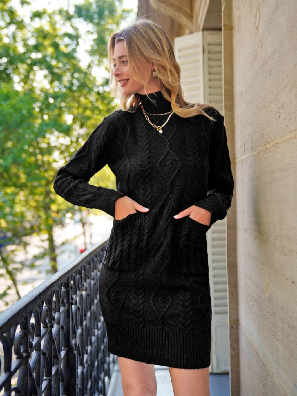 Kadın Uzun Kollu Balıkçı Yaka Uzun Akrilik Elbise