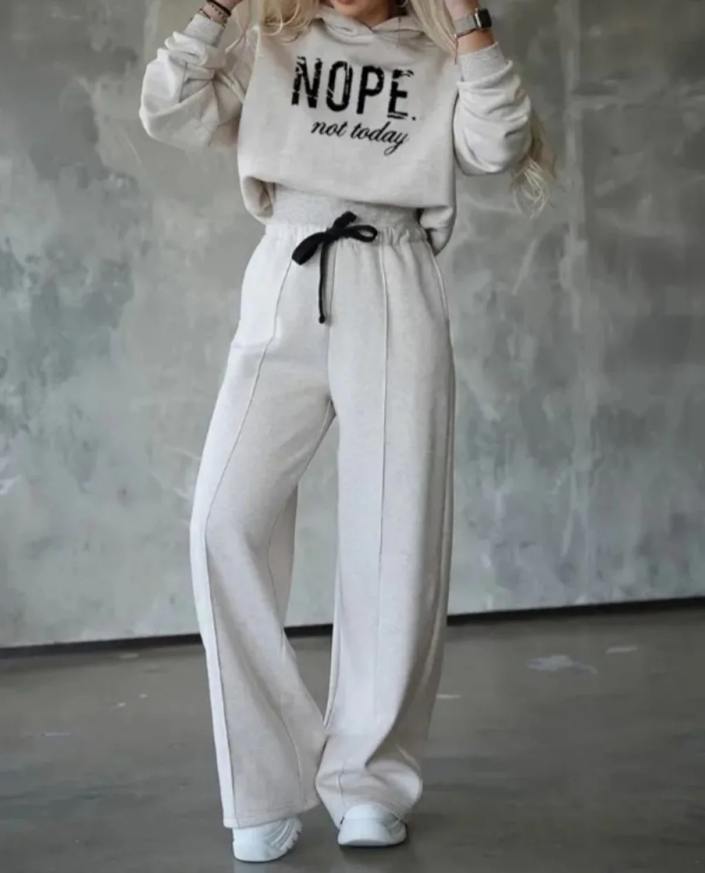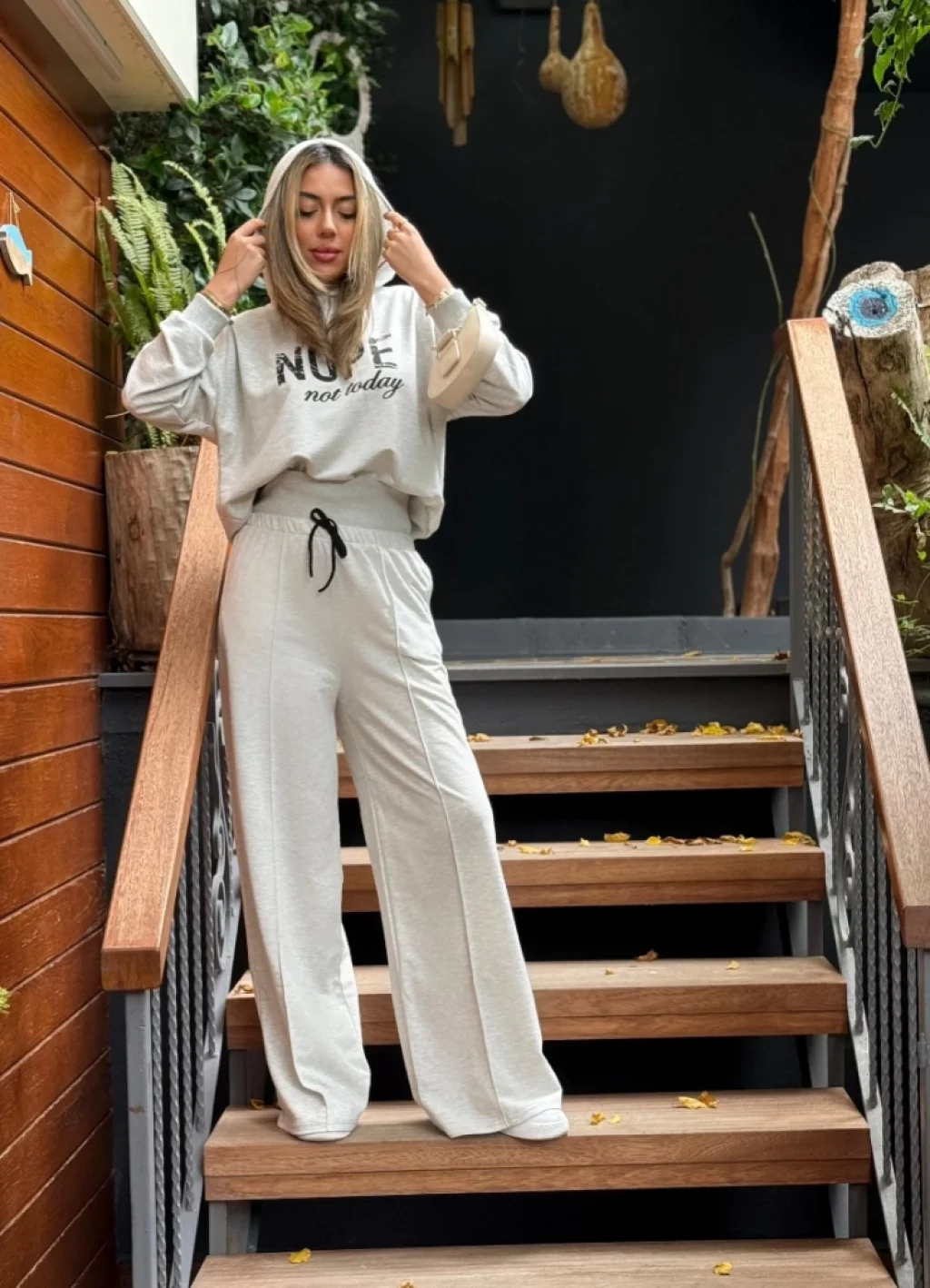 Kadın Uzun Kollu Kapşonlu Viskon Iki Iplik Bluz Ve Pantolon Ikili Takım