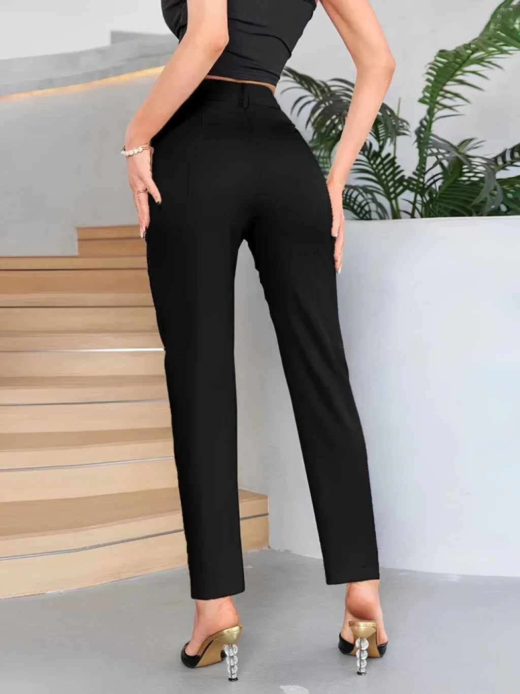 Kadın Yüksek Bel önden Zincir Detaylı Ithal Krep Pantolon