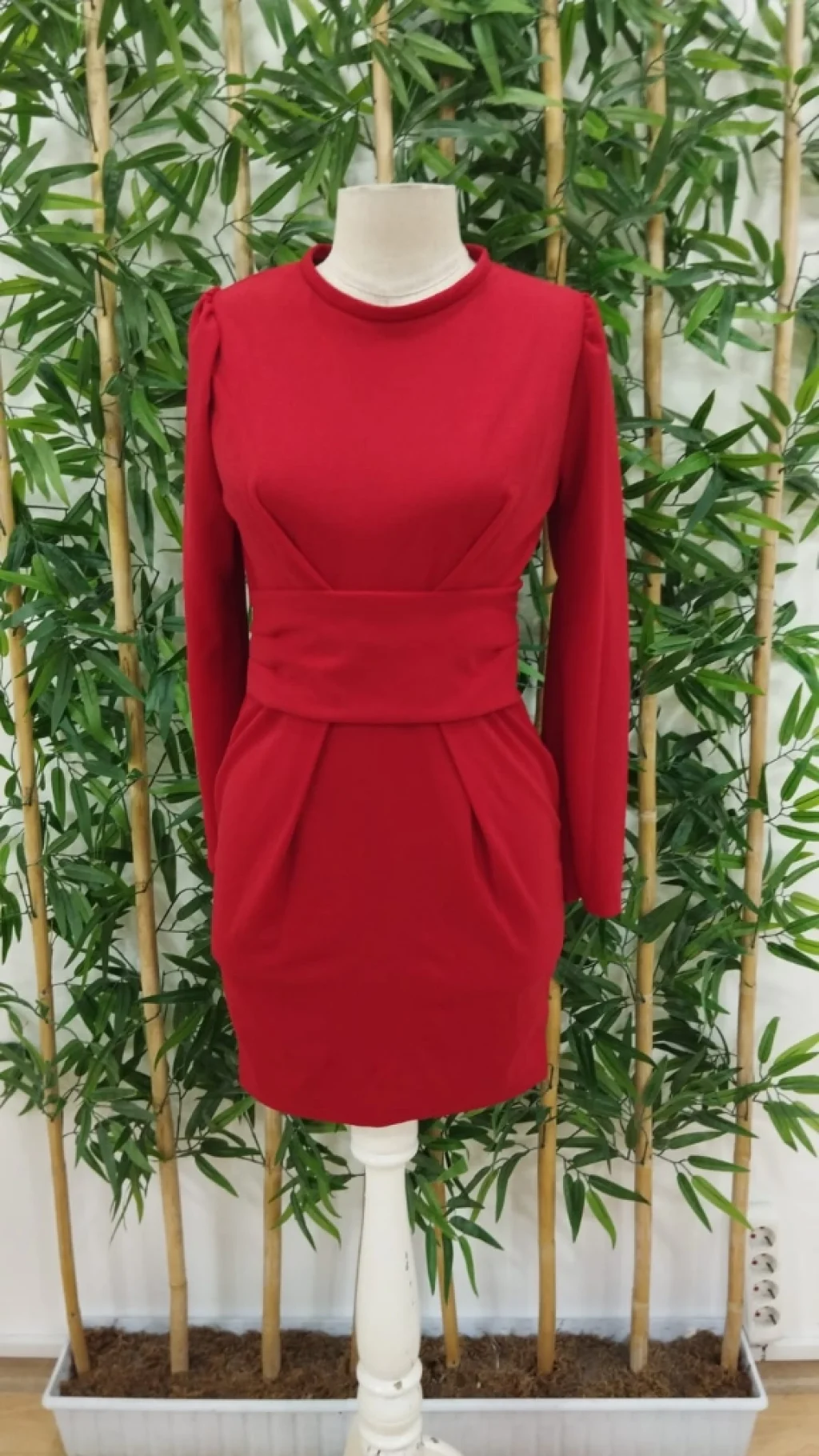 Kadın Uzun Kollu Bisiklet Yaka Bel Kemer Detay Ithal Krep Elbise