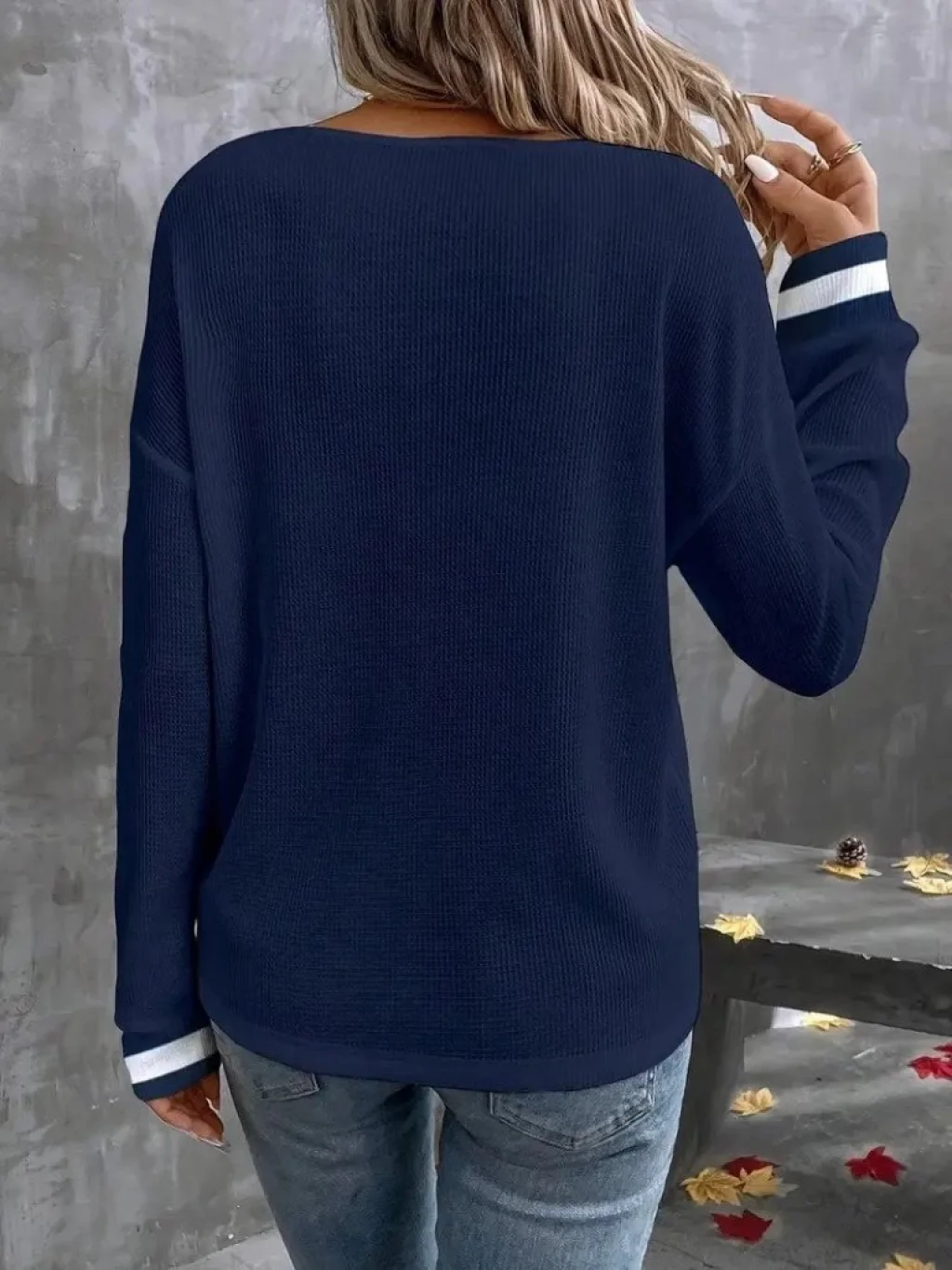 Kadın Uzun Kollu V Yakalı Waffle Bluz