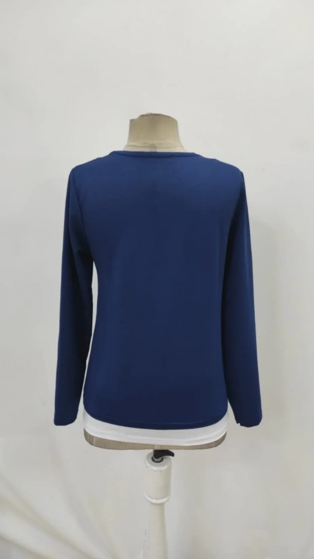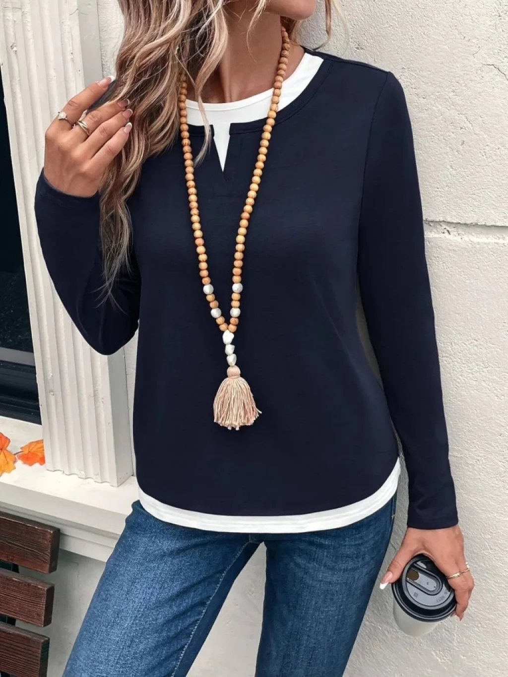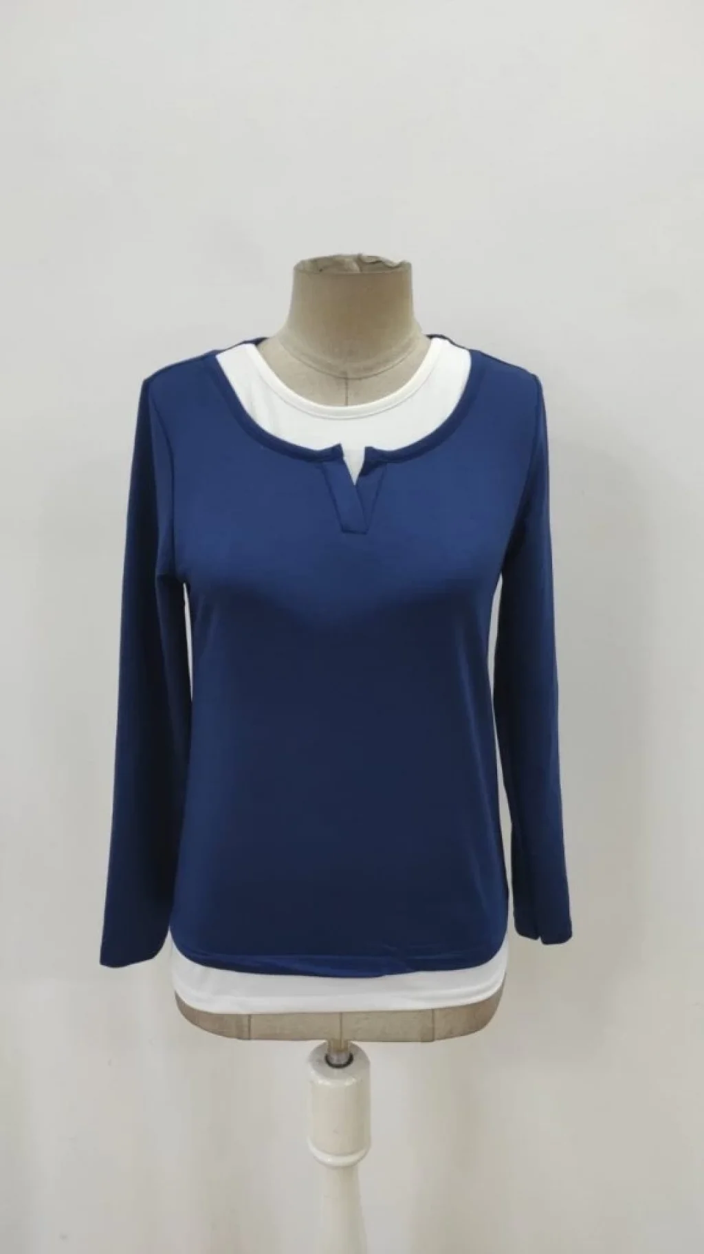 Kadın Uzun Kollu V Yakalı çift Renkli Viskon Iki Iplik Bluz