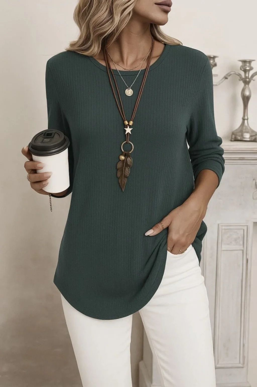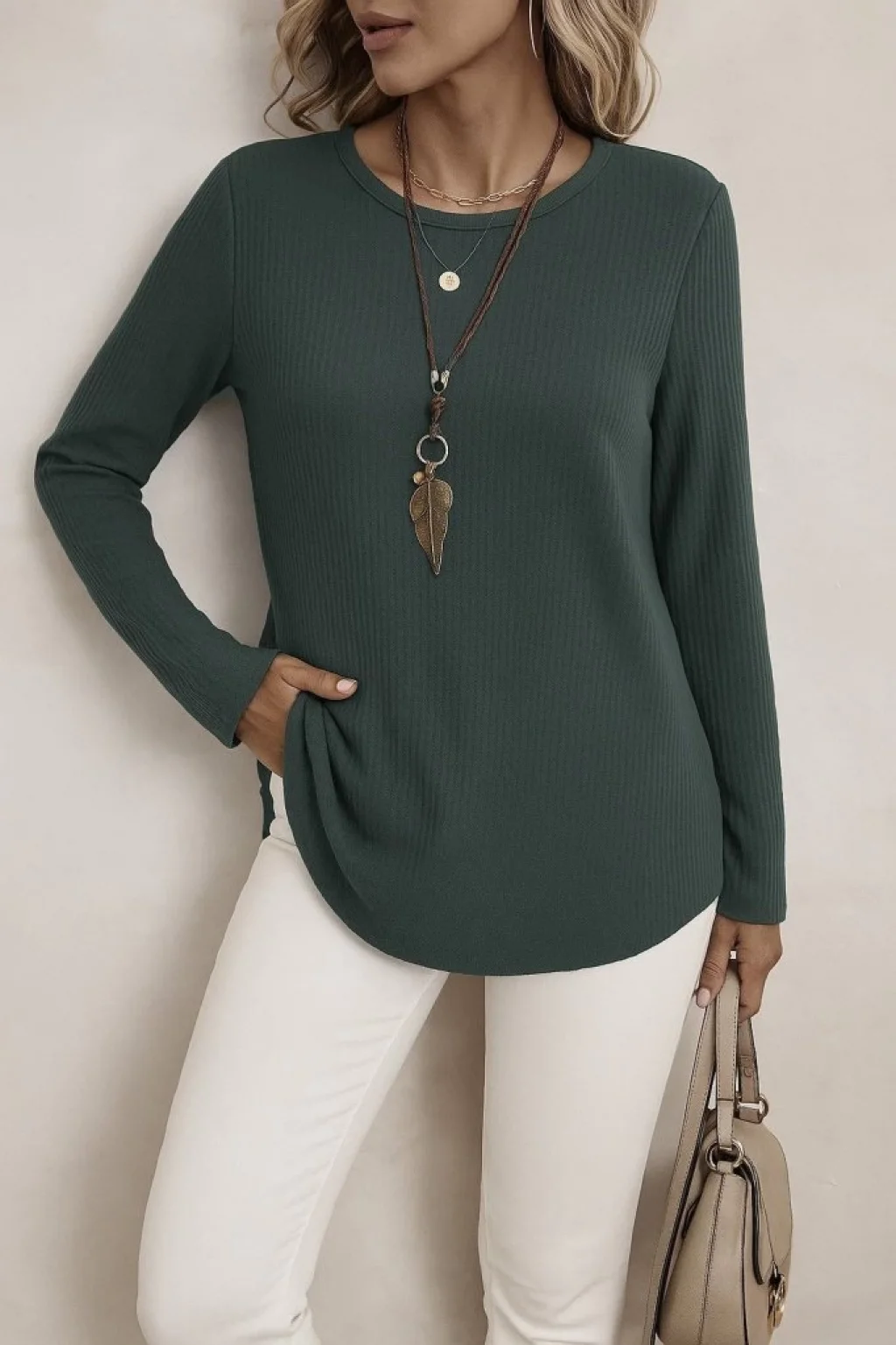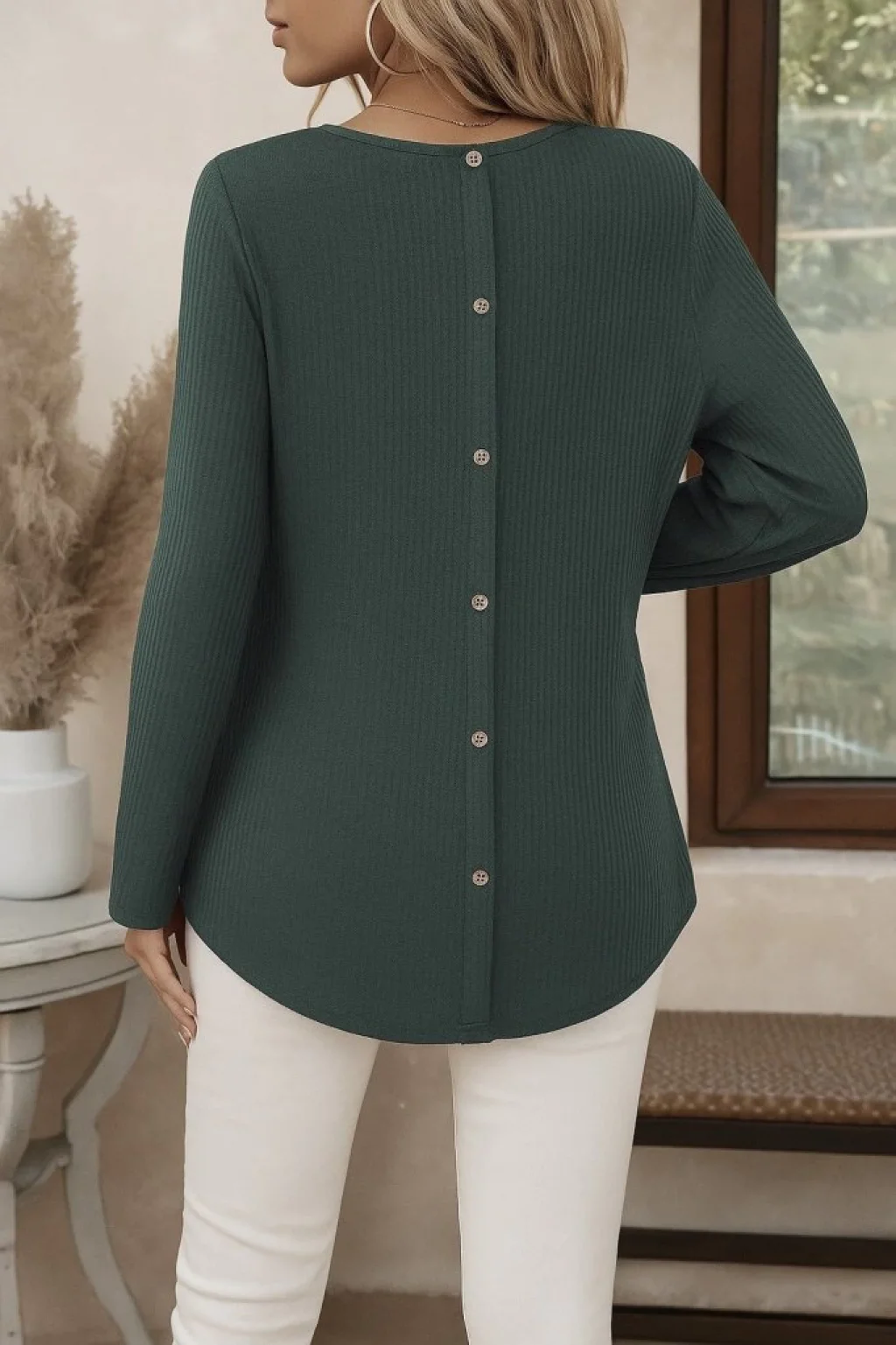 Kadın Uzun Kollu Yuvarlak Yaka Arkadan Düğmeli Waffle Bluz