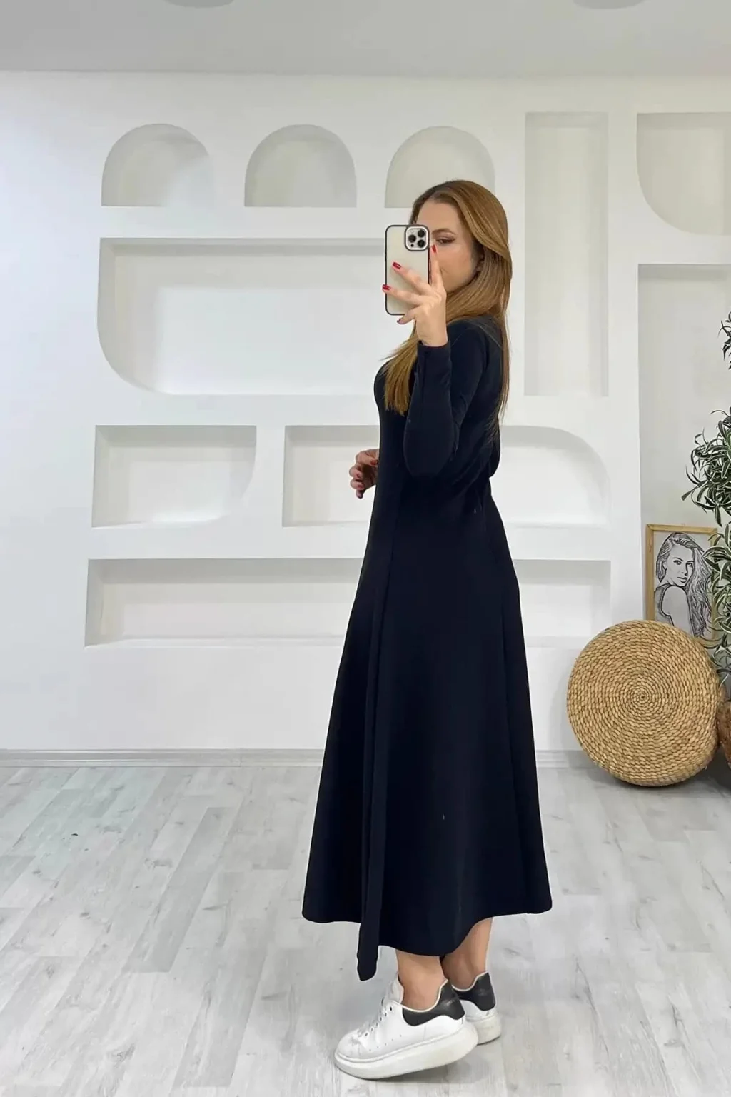 Kadın Uzun Kollu Bisiklet Yaka Size Kadar Yırtmaç Detay Maxi Boy Elbise