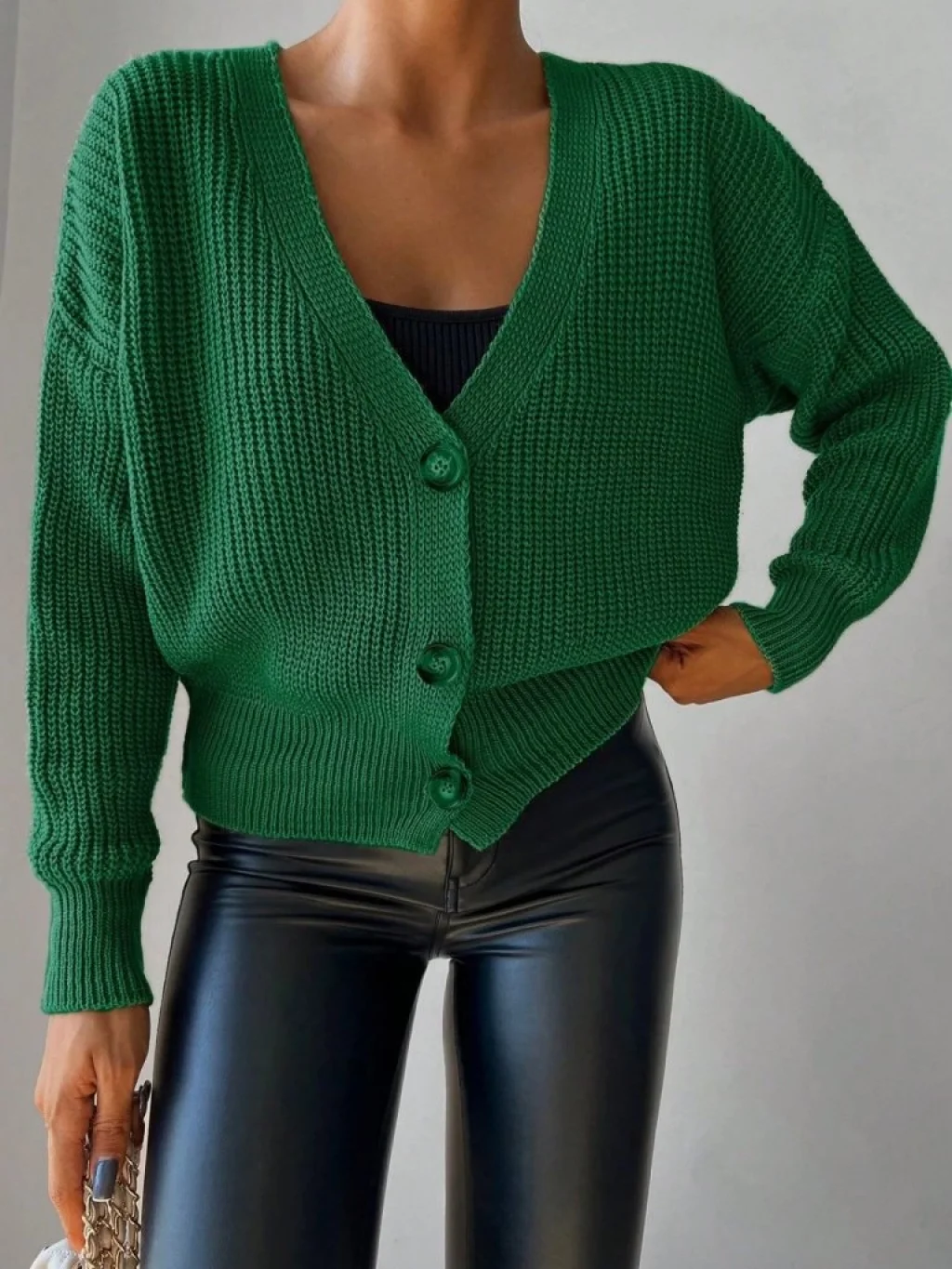 Kadın Uzun Kollu Düğme Detay Triko Hırka