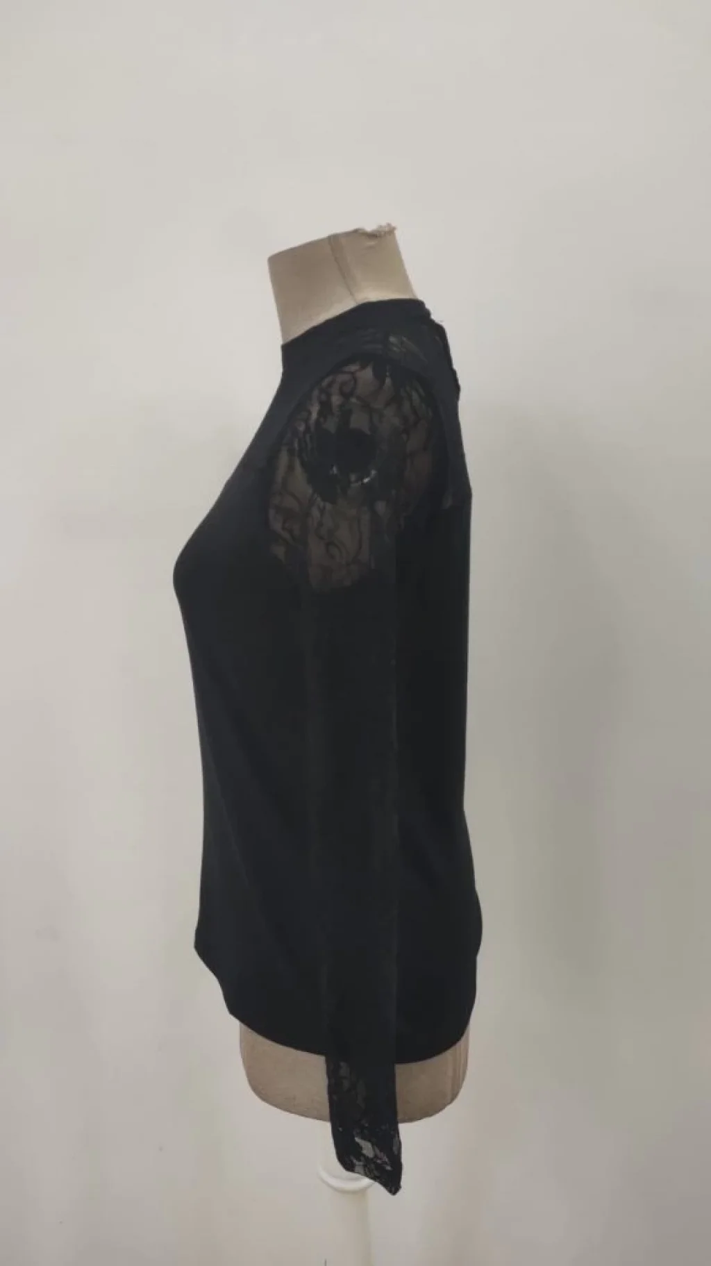 Kadın Uzun Kollu Bisiklet Yaka Asimetrik Kesim Detaylı Dantelli Viskon Bluz
