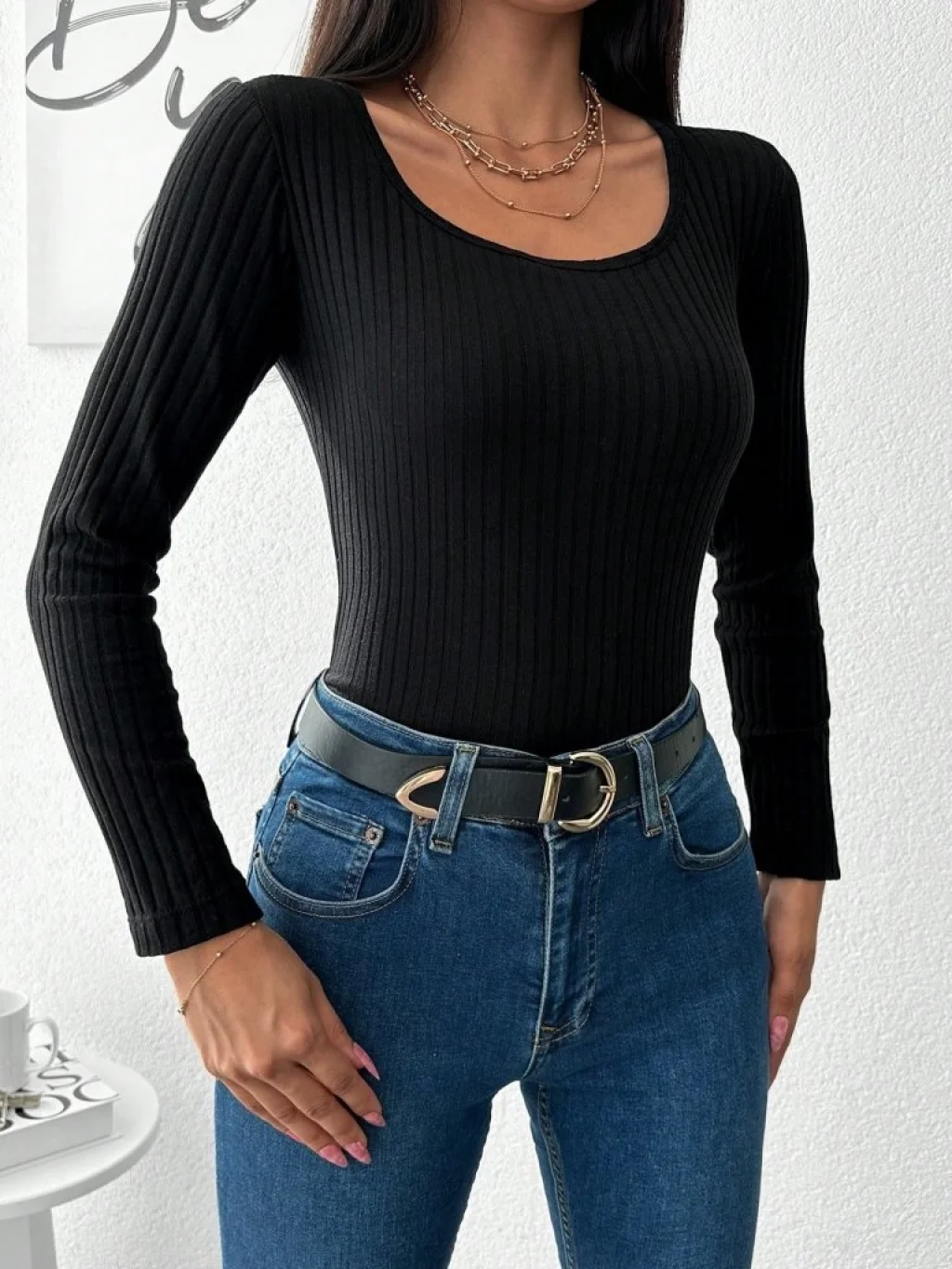 Kadın Uzun Kollu Derin Yuvarlak Yaka Kaşkorse Bluz