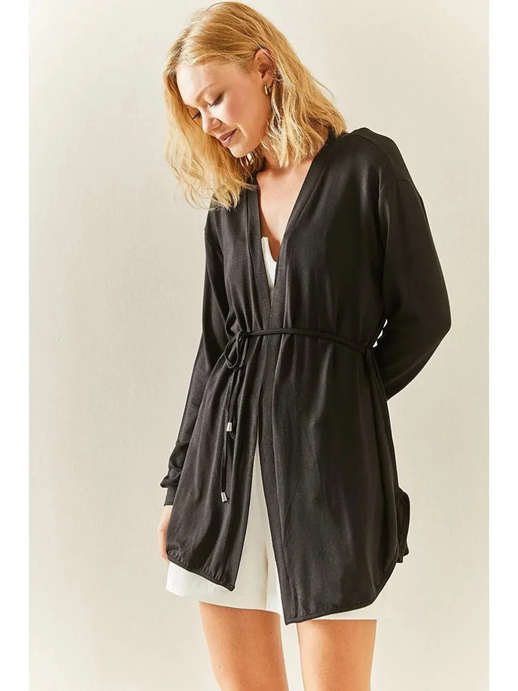 Kadın Uzun Kollu Bağcık Detay Hırka