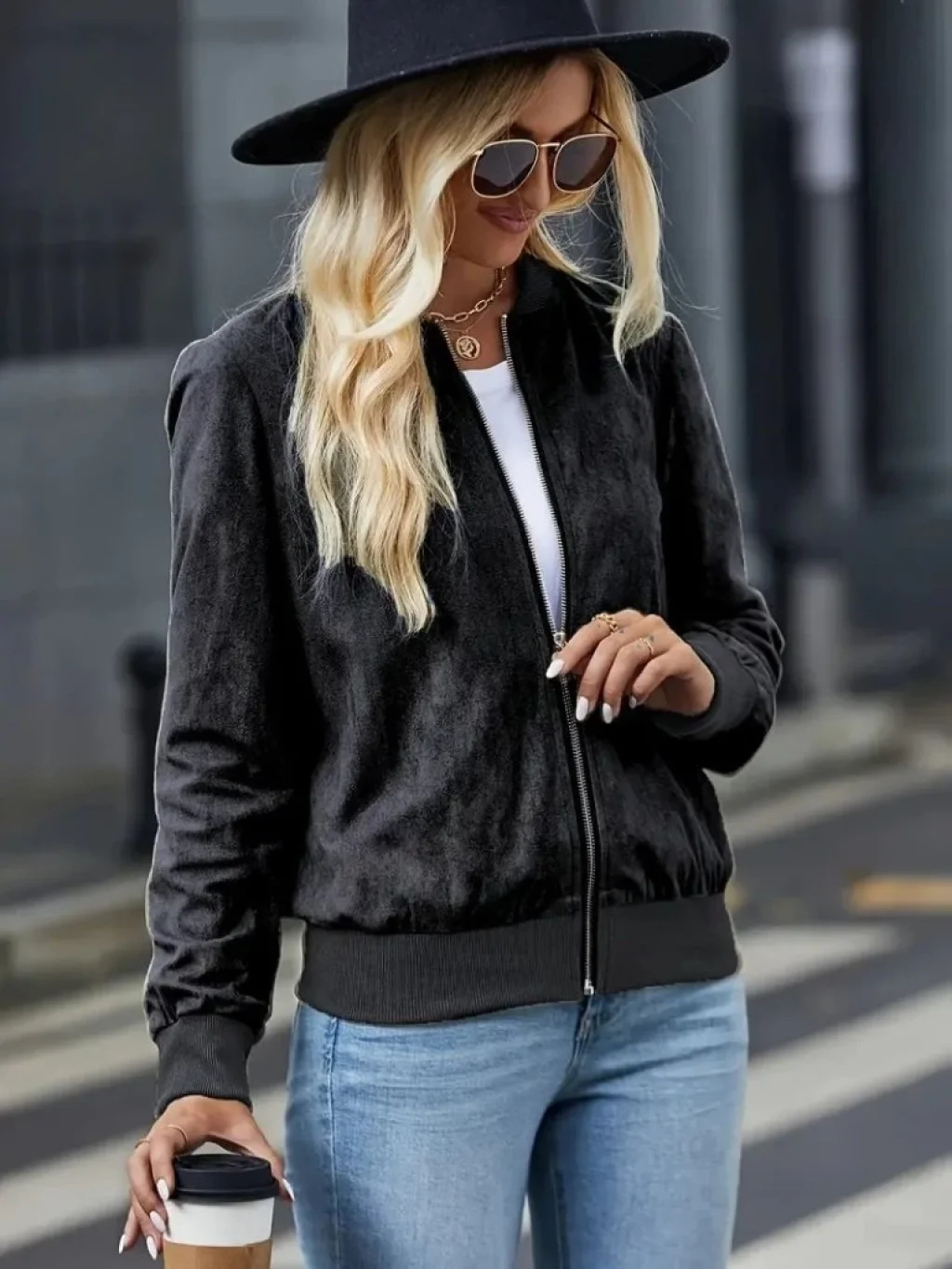 Kadın Uzun Kollu önden Fermuarlı Süet Ceket
