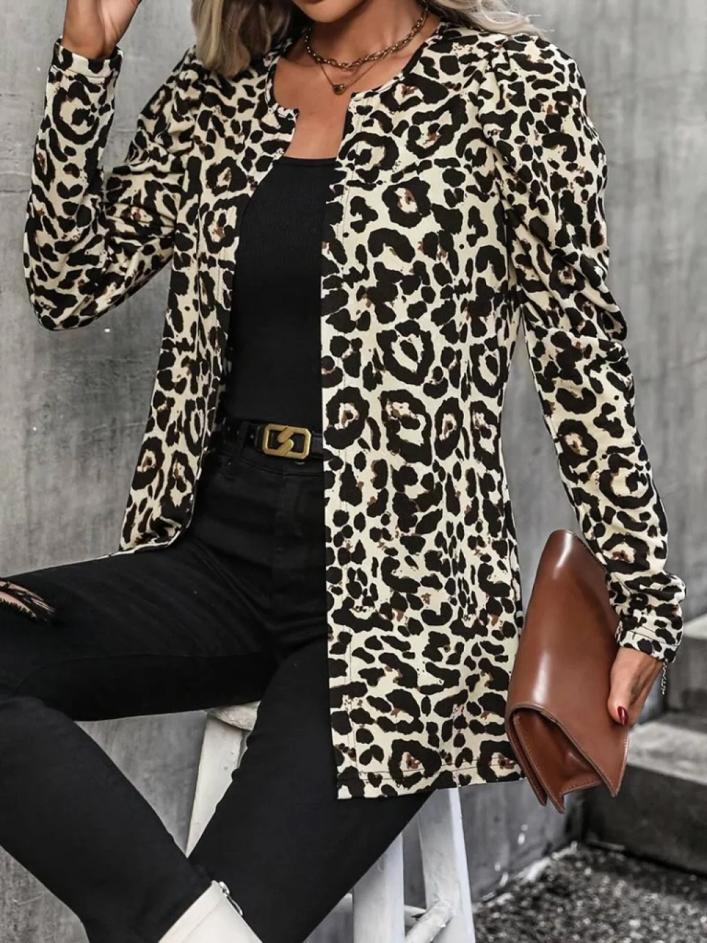 Kadın Uzun Kollu önü Açık Desenli şardonlu Dalgıç Ceket