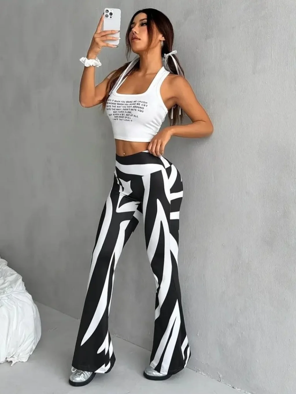 Kadın Yüksek Bel Zebra Desenli Dalgıç Tayt