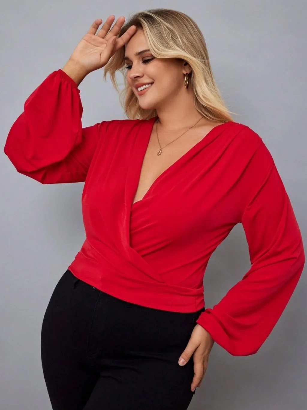 Kadın Uzun Kollu Kruvaze Yaka Sandy Bluz