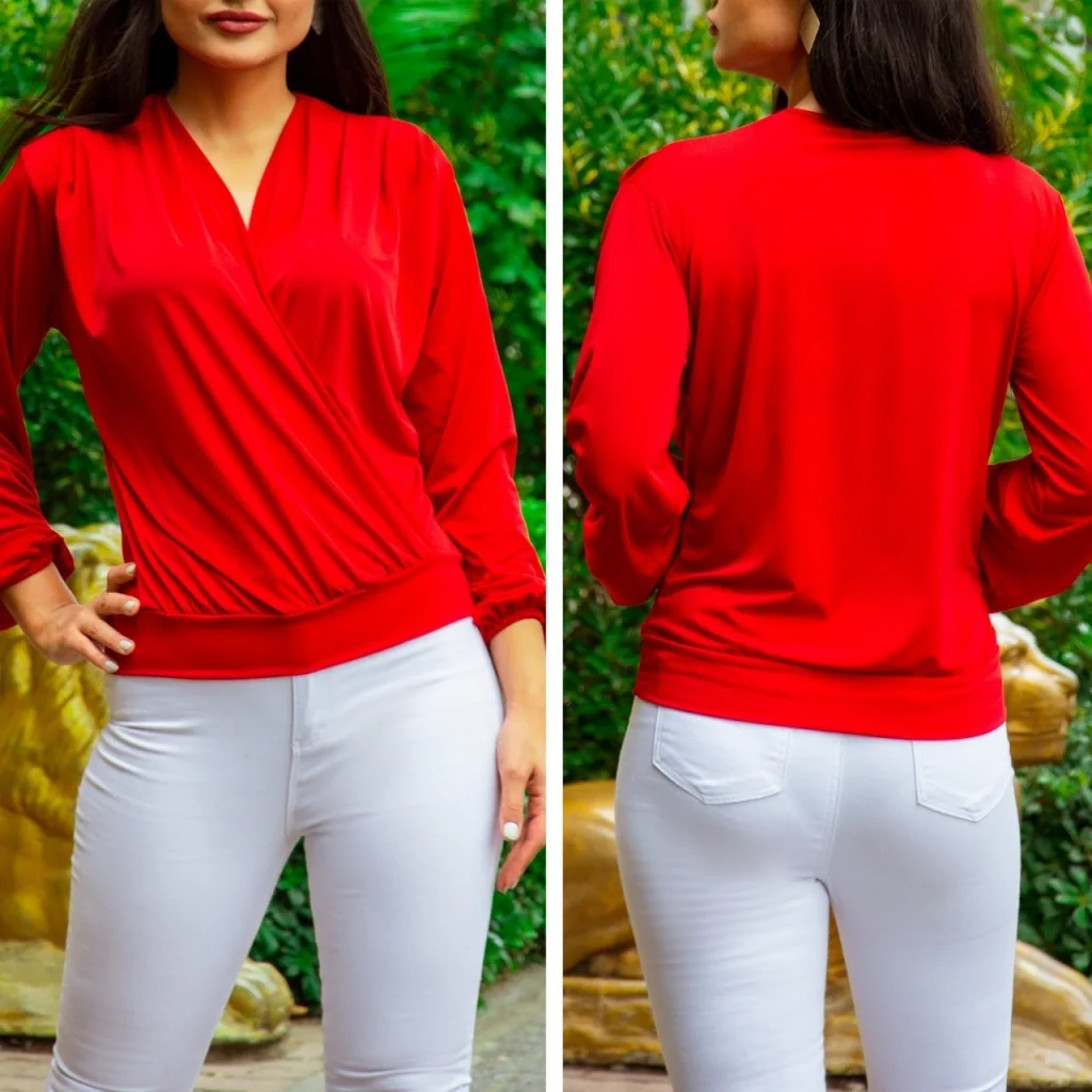 Kadın Uzun Kollu V Yakalı Kaşkorse Bluz