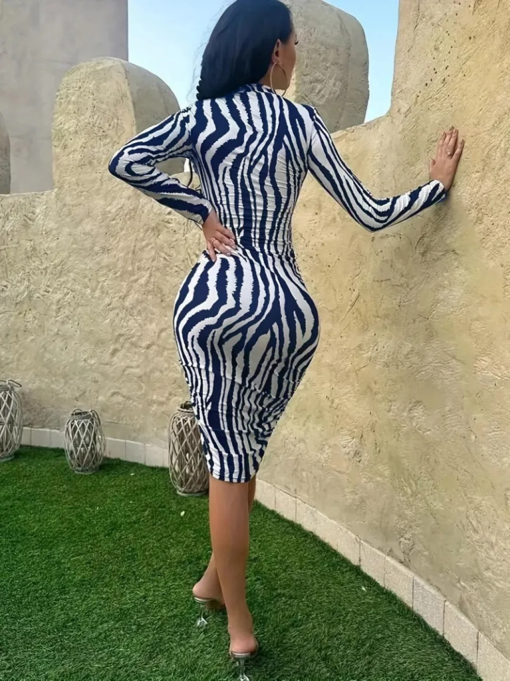 Kadın Uzun Kollu Geometrik Yaka Midi Ithal Krep Elbise