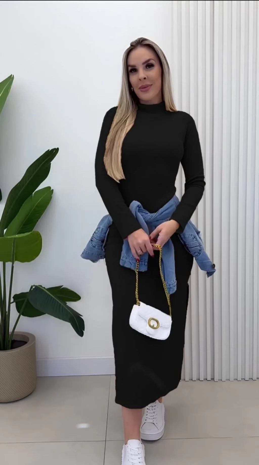 Kadın Uzun Kollu Balıkçı Yaka Uzun Akrilik Elbise
