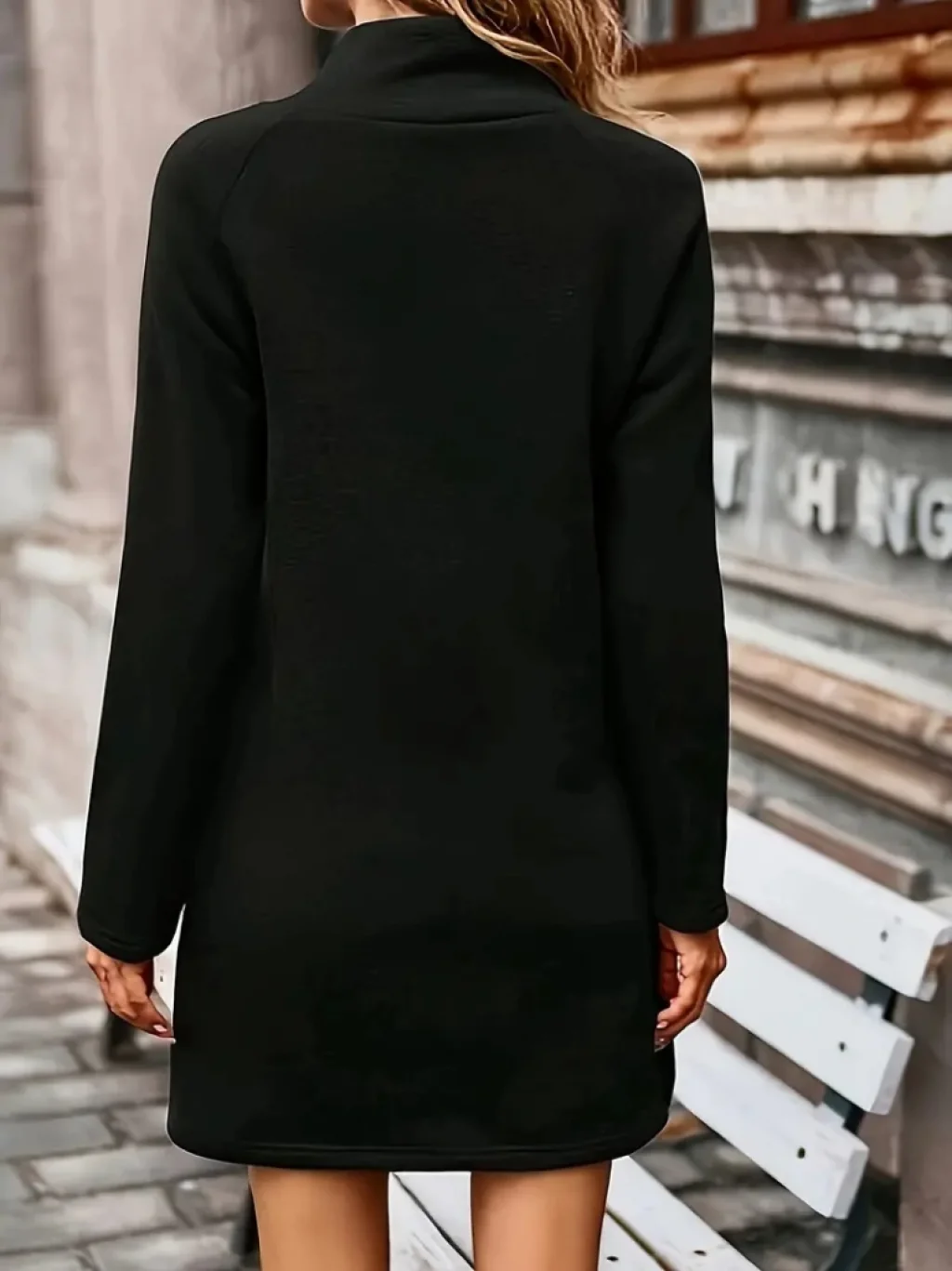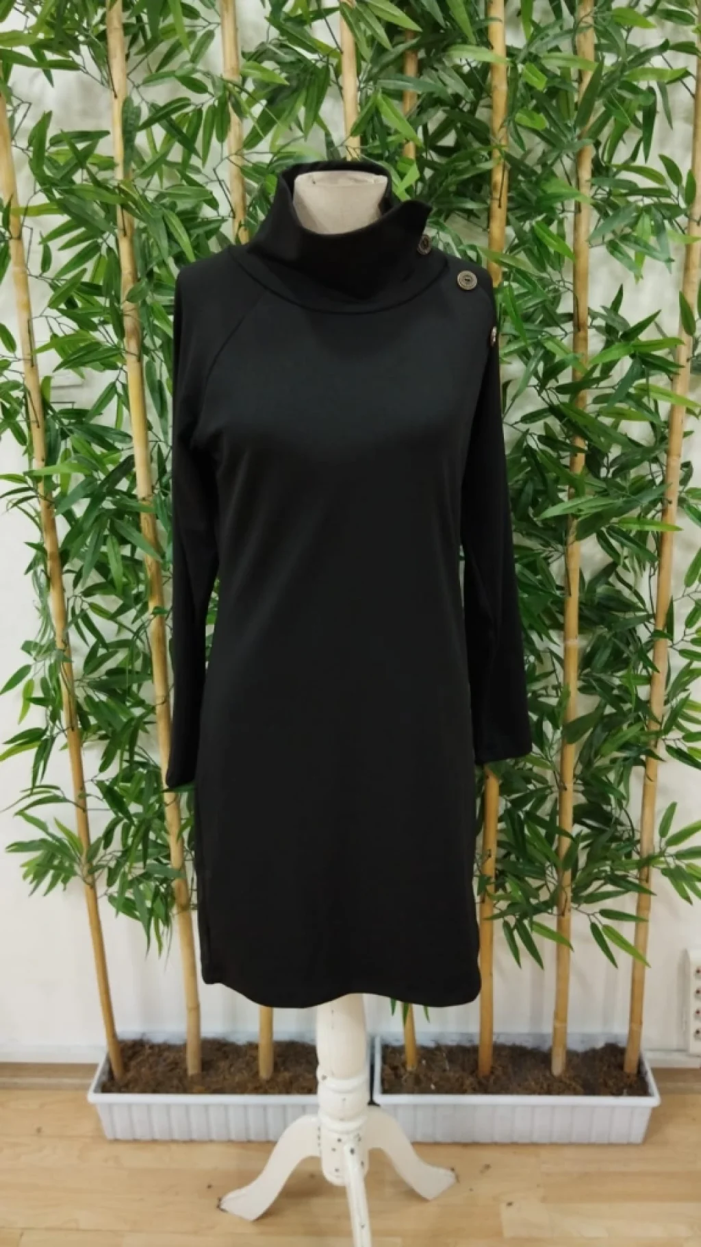 Kadın Uzun Kollu Balıkçı Yaka Düğme Detaylı Kısa şardonlu Dalgıç Elbise