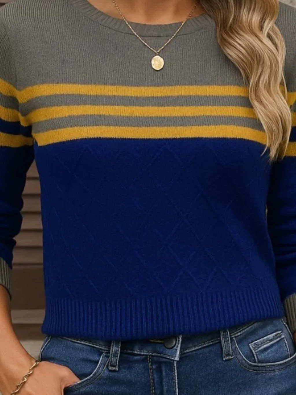 Kadın Uzun Kollu Bisiklet Yaka çok Renkli Triko Bluz