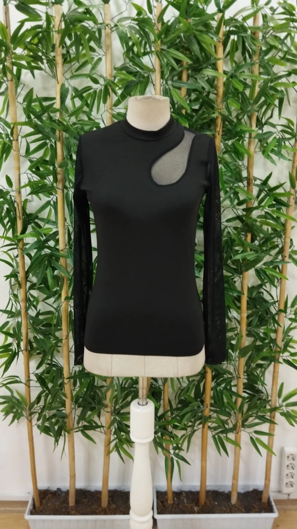 Kadın Uzun Kollu Yarı Balıkçı Yaka Kolları Tüllü Dalgıç Bluz