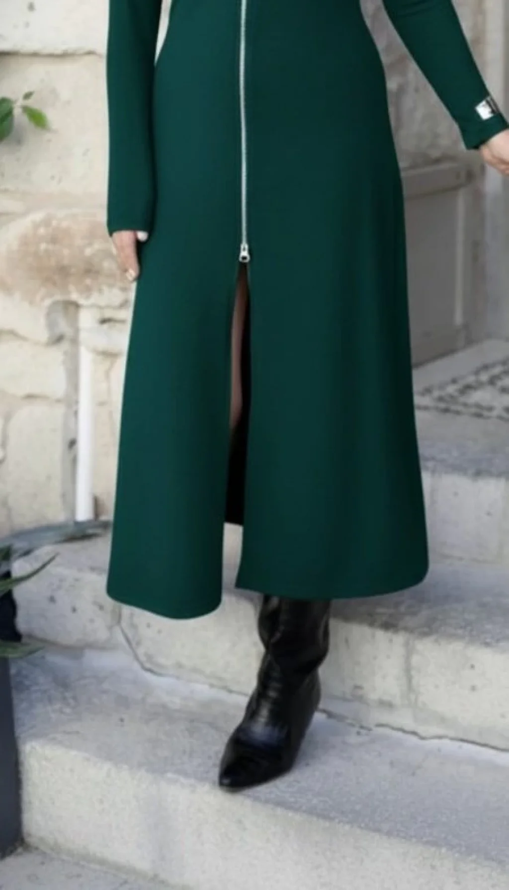 Kadın Uzun Kollu önden Fermuarlı Ithal Krep Elbise