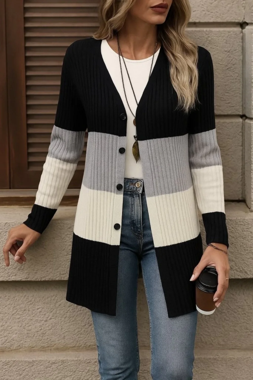 Kadın Uzun Kollu çok Renkli önden Düğmeli Uzun Ceket