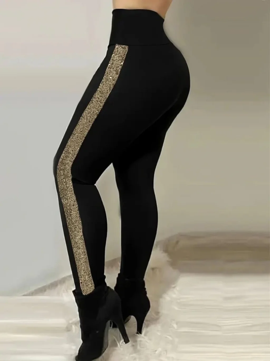 Kadın Yüksek Bel Yan şerit Detaylı Dalgıç Tayt