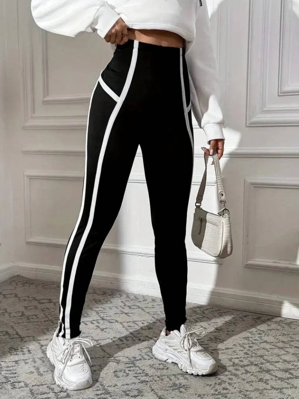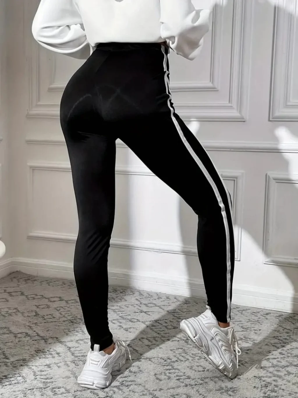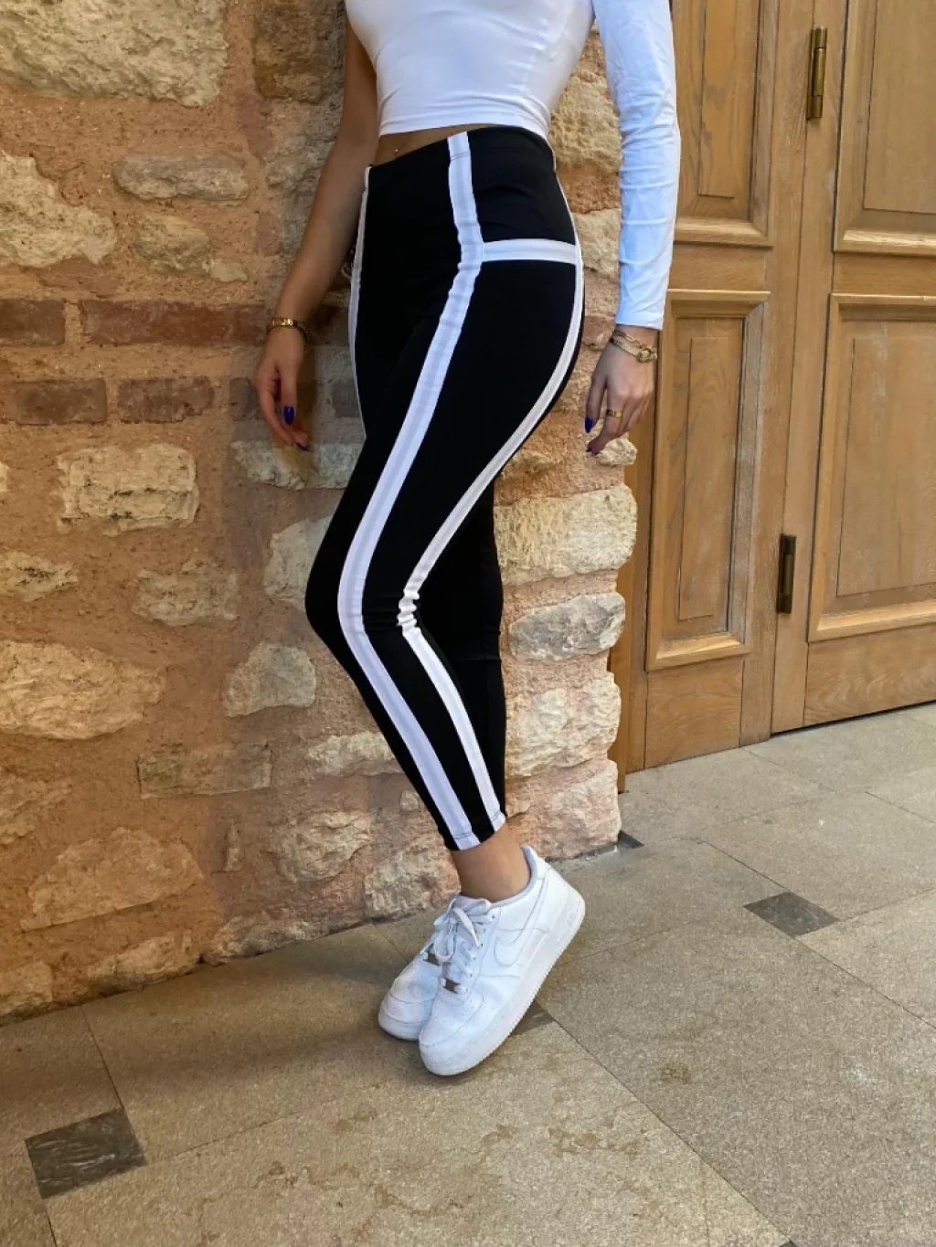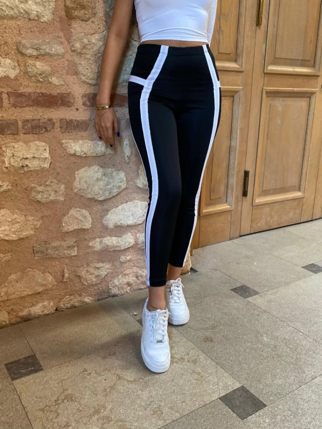 Kadın Yüksek Bel Yan şerit Detaylı Dalgıç Tayt