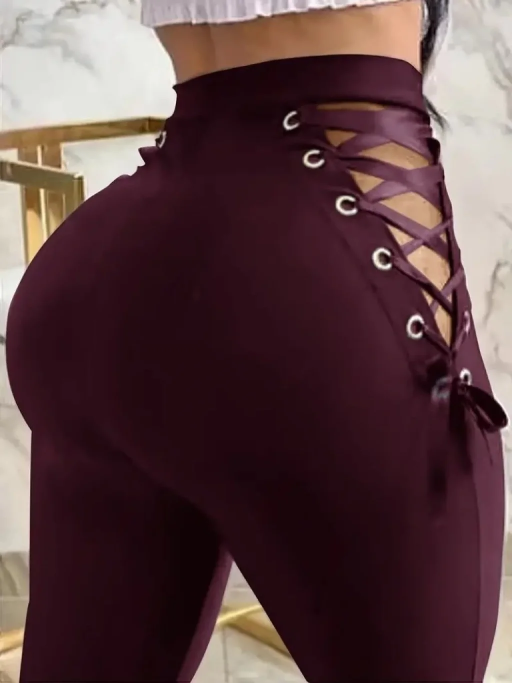 Kadın Yüksek Bel Deri Tayt