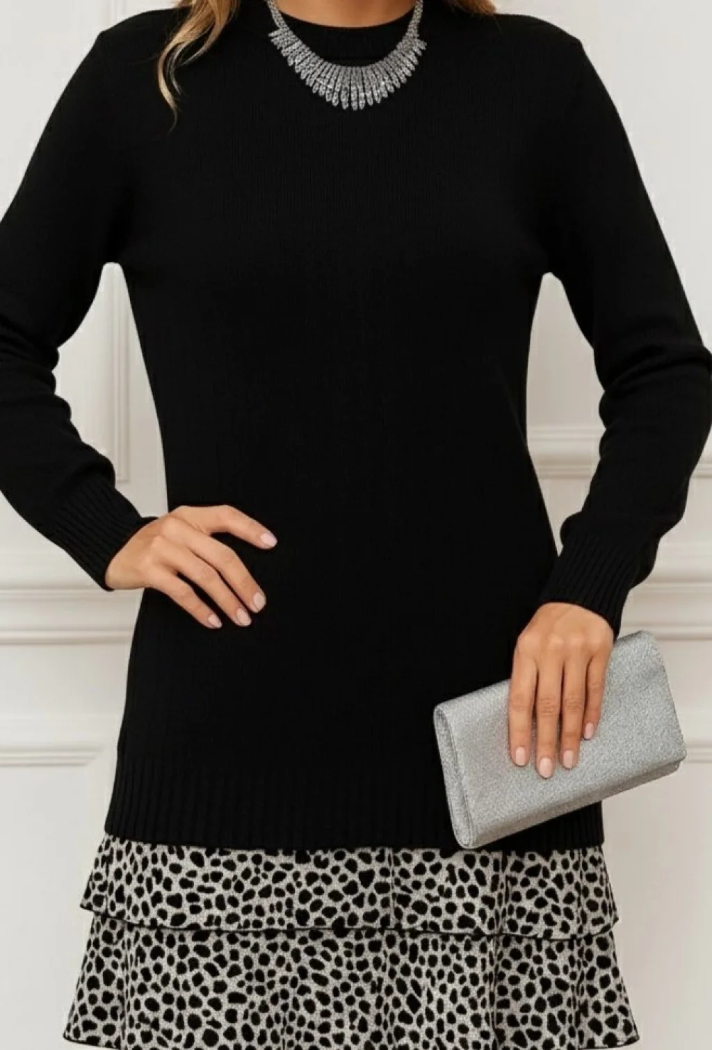 Kadın Uzun Kollu üst şardonlu Kaşkorse Alt Süprem Desenli Elbise