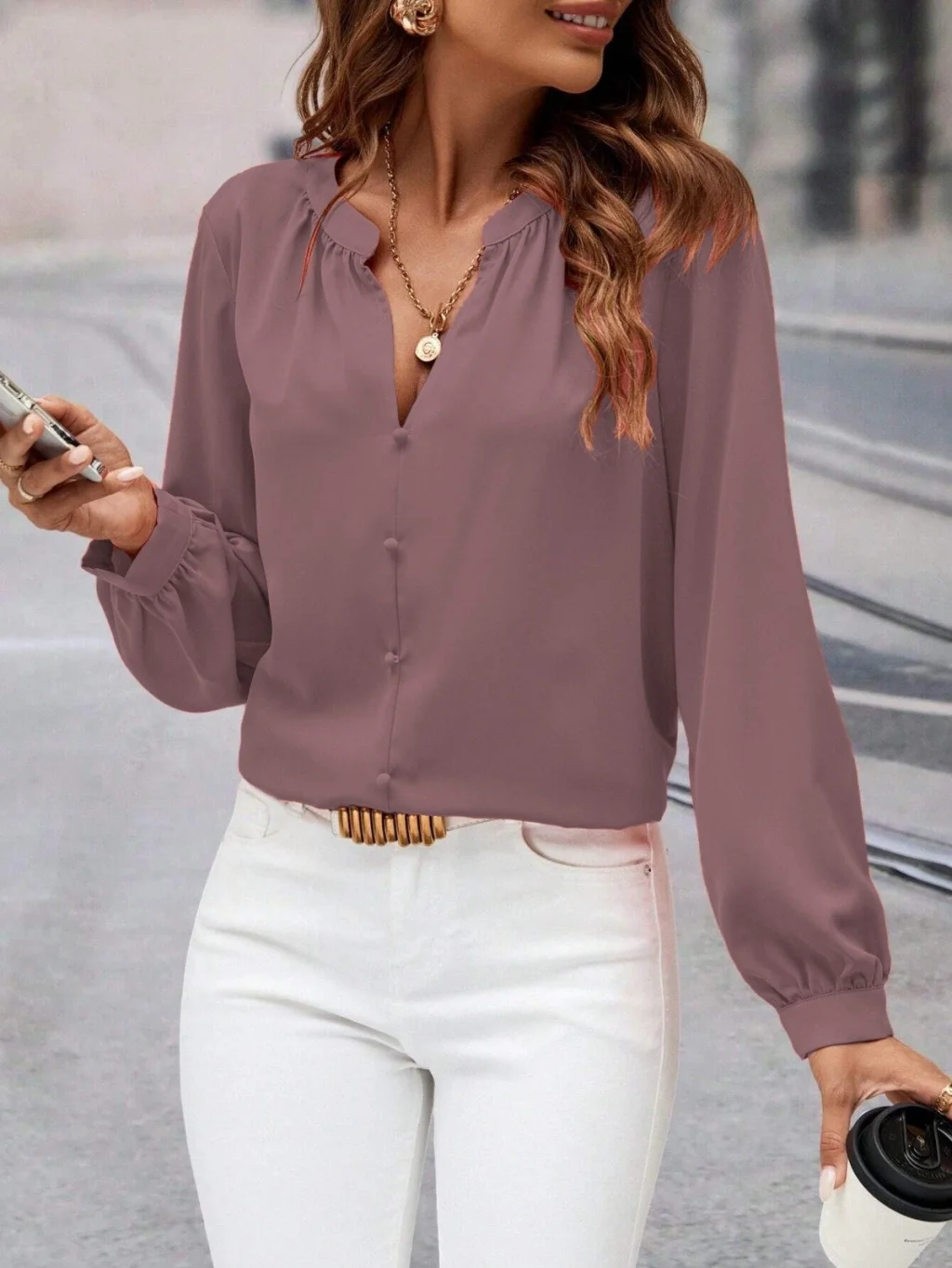 Kadın Dokuma Viskon Kumaş V Yaka Dekolte Ve Metal Düğme Detaylı Gömlek
