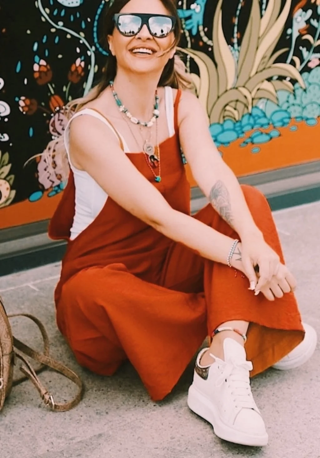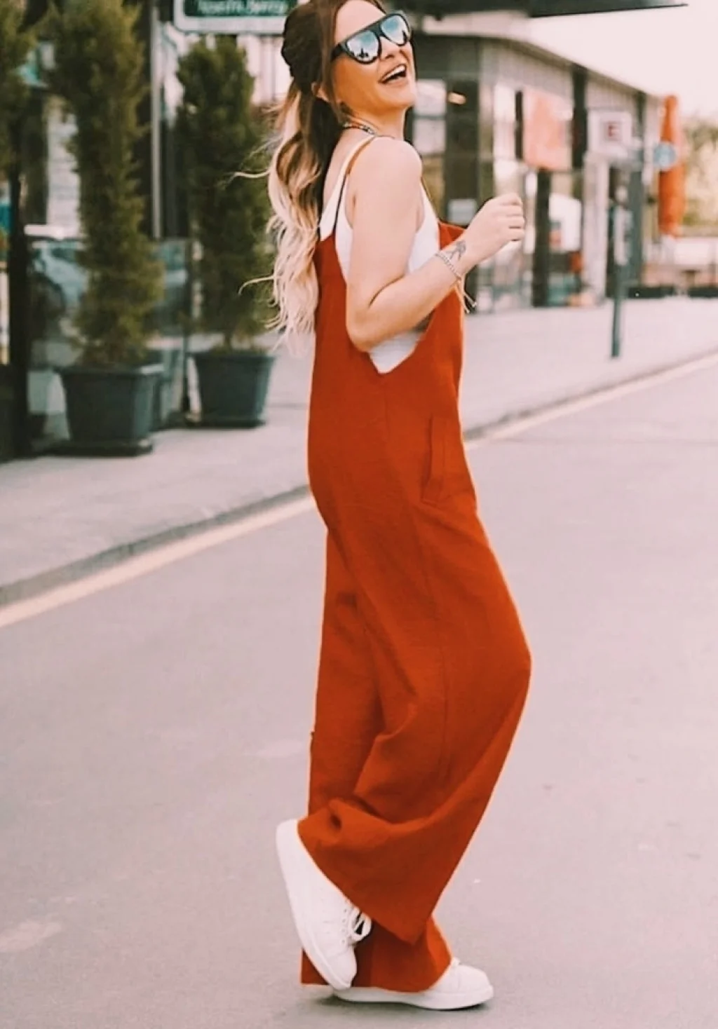Kadın Askılı Yuvarlak Yaka Cepli Salaş Uzun Viskon Tulum