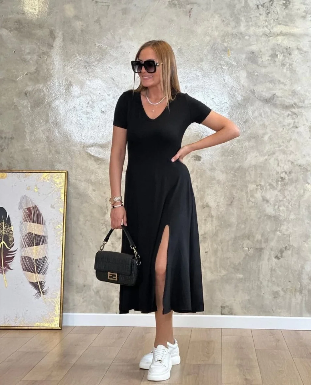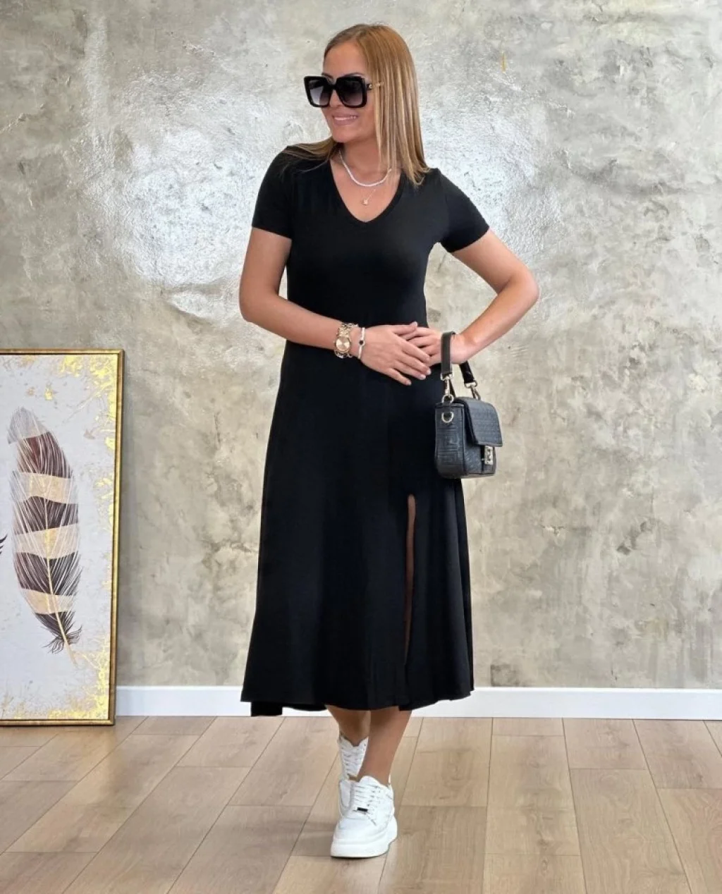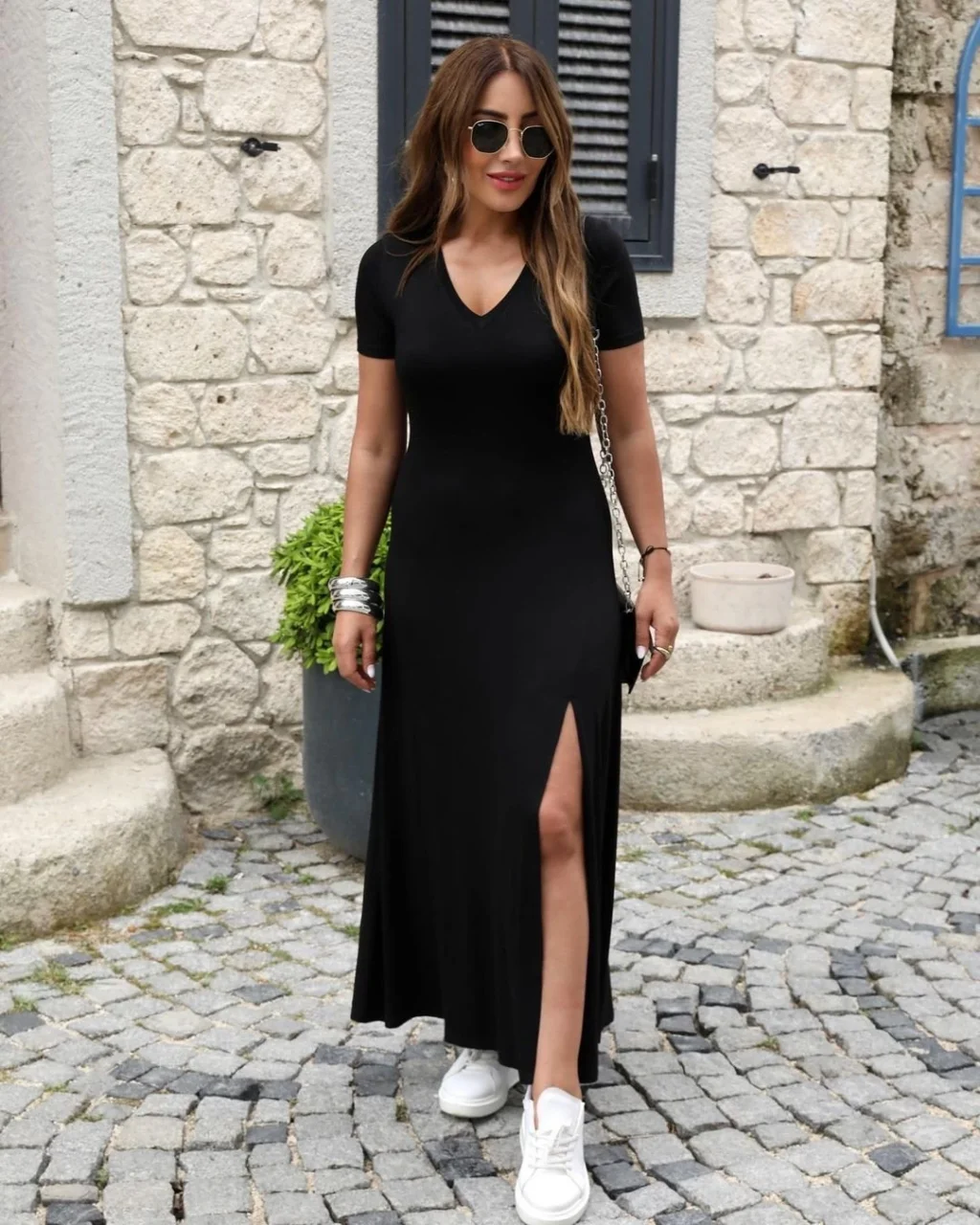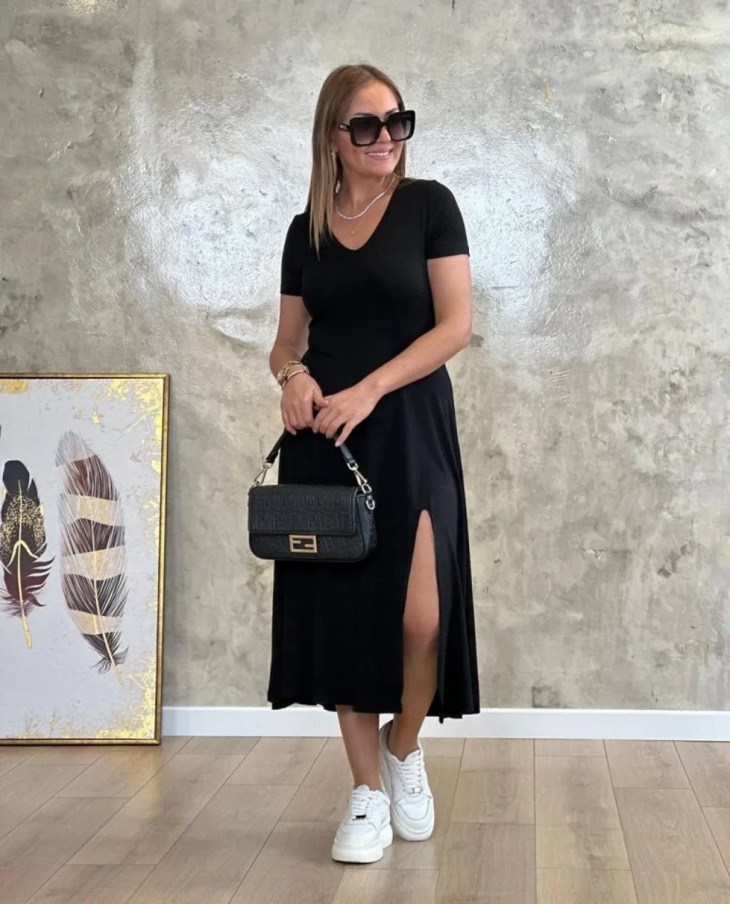 <p>Kadın Kısa Kollu V Yaka Maxi Boy Elbise 124 Cm</p><br> <p>Modelin Ölçüleri: Boy:165, Kg:55, Göğüs:90, Bel:72, Kalça: 100</p><br> <p>Modelin üzerindeki ürün M/38 bedendir</p><br> <ul> <li>KALIP-Düz/Desensiz</li><li>TARZ-Gündelik</li><li>KOL UZUNLUK-Kısa Kol</li><li>DESEN-Desensiz/Düz</li><li>YAKA-V Yaka</li><li>UZUNLUK-Maxi Boy</li><li>TARZ-Spor</li><li>EK OZELLIKLER-Boş/Ek özellik Yok</li> </ul>