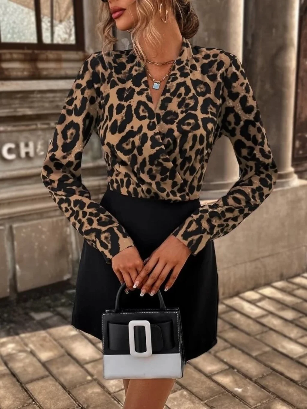 Kadın Uzun Kollu Kruvaze Yaka Krep Mini Boy Elbise