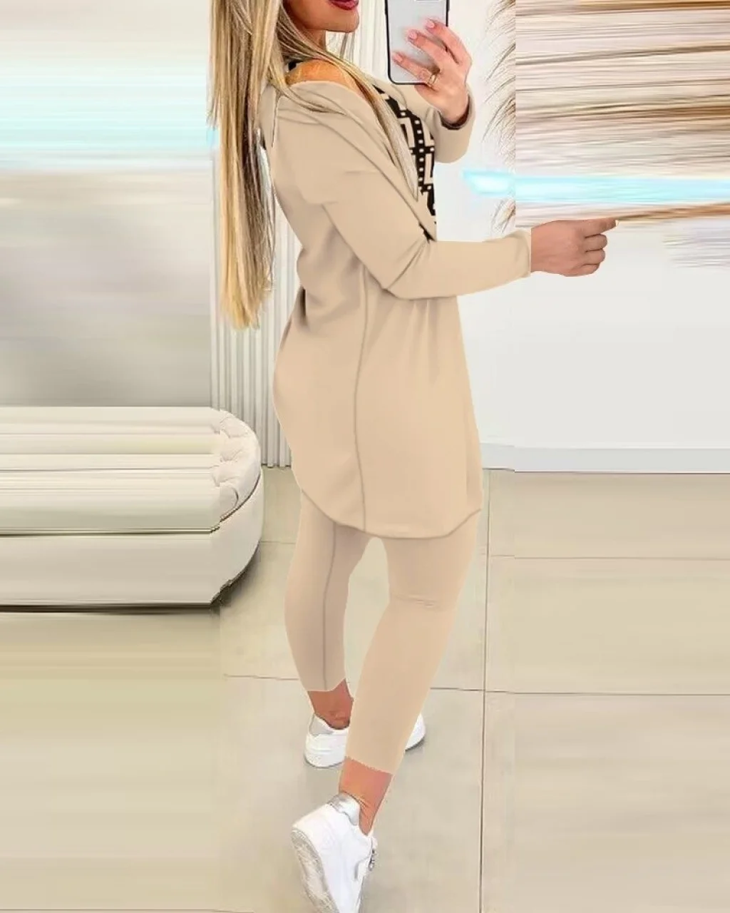 Kadın Uzun Kollu Kapşonlu Onu şerit Detaylı Fermuarlı Viskon Iki Iplik Bluz Ve Pantolon Ikili Takım