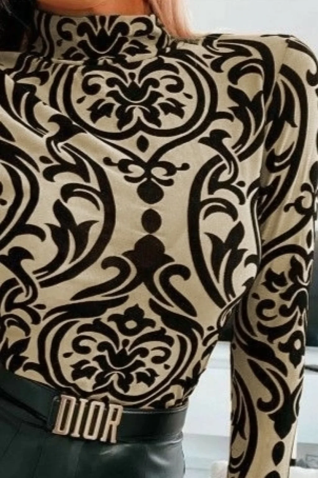 Kadın Uzun Kollu Balıkçı Yaka Desenli Sandy Bluz