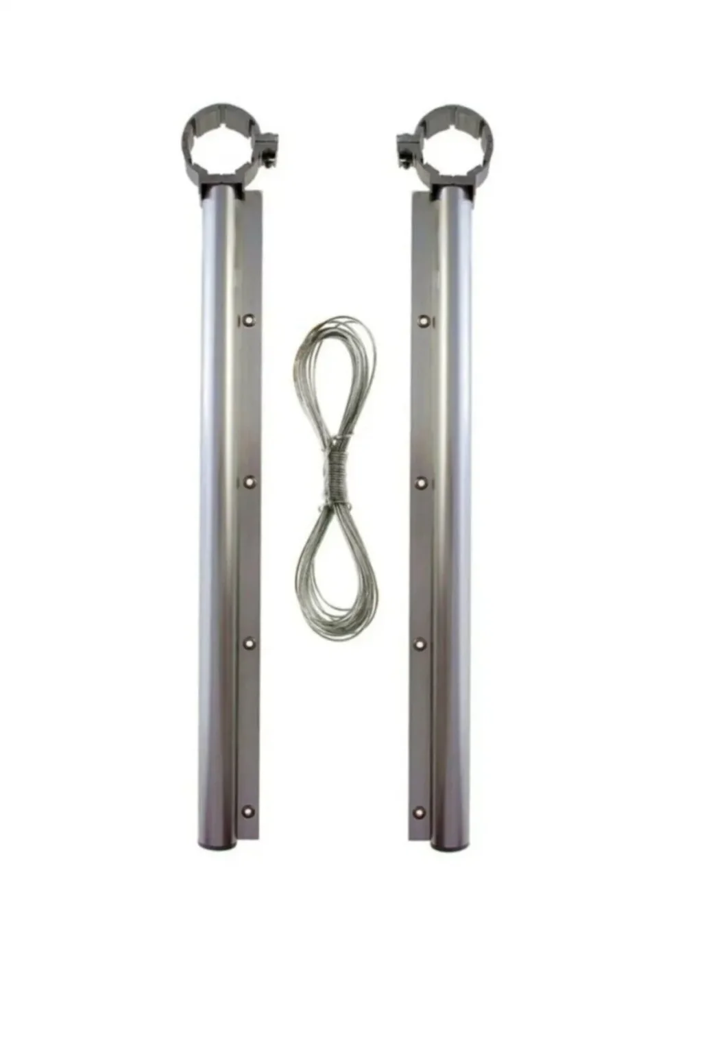 Alüminyum küpeşte ile birlikte gelen çamaşır ipi, ekstra destek ve stabilite sunarak çamaşırlarınızın zarar görmesini önler