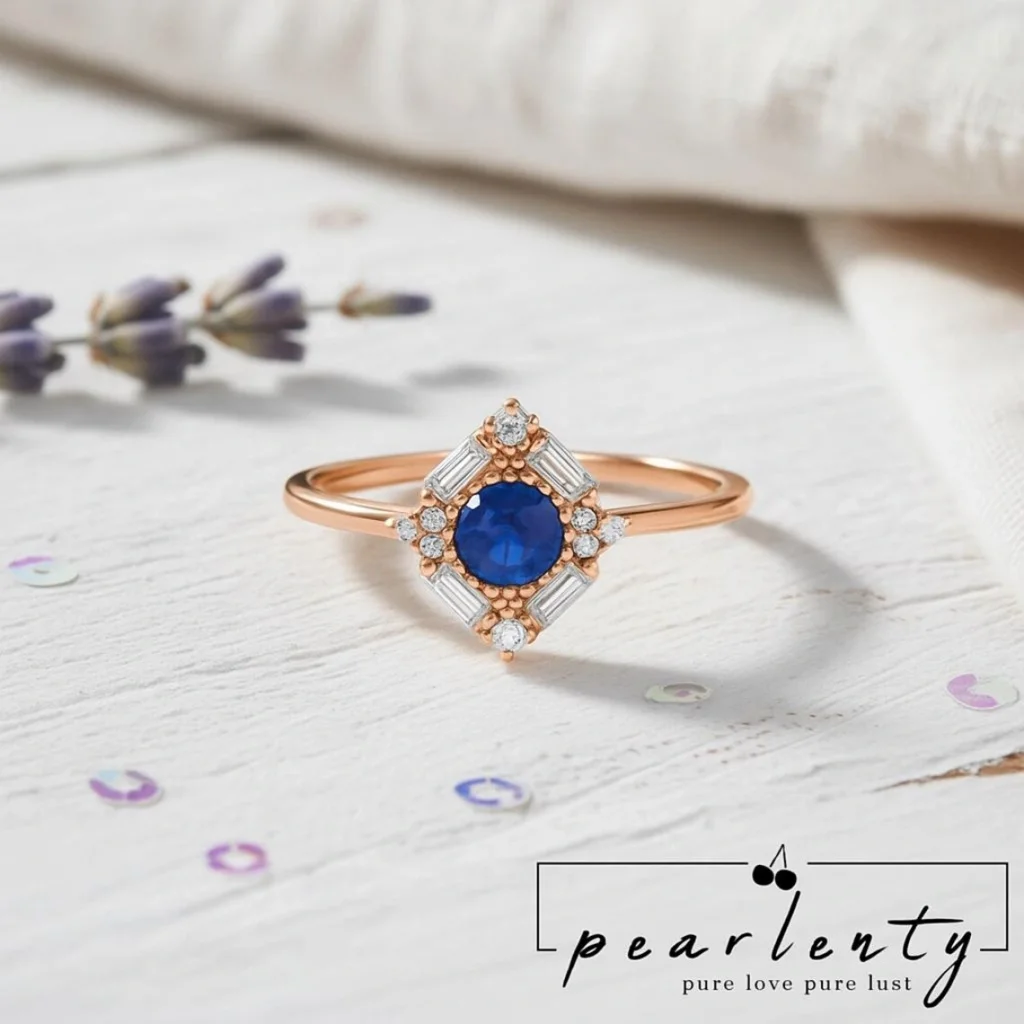 Bu som altın safir ve pırlanta yüzük, asil bir güzellik ve zamansız bir zarafetle parlıyor. Göz kamaştırıcı baget ve yuvarlak pırlantalarla çevrili koyu mavi safir, zarafet ve romantizm saçıyor; sadakatin, gerçeğin ve sonsuz aşkın sembolü. ??
