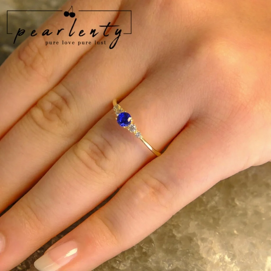 Zarafet ve aşk için tasarlanmış, zamansız, zarif bir mücevher parçası. Bu som altın safir yüzük, 10K ve 14K sarı, beyaz ve pembe altın seçenekleriyle mevcuttur. Ortasında, her iki tarafında ışıltılı laboratuvar üretimi pırlantalarla süslenmiş, değerli koyu mavi bir safir parlar.