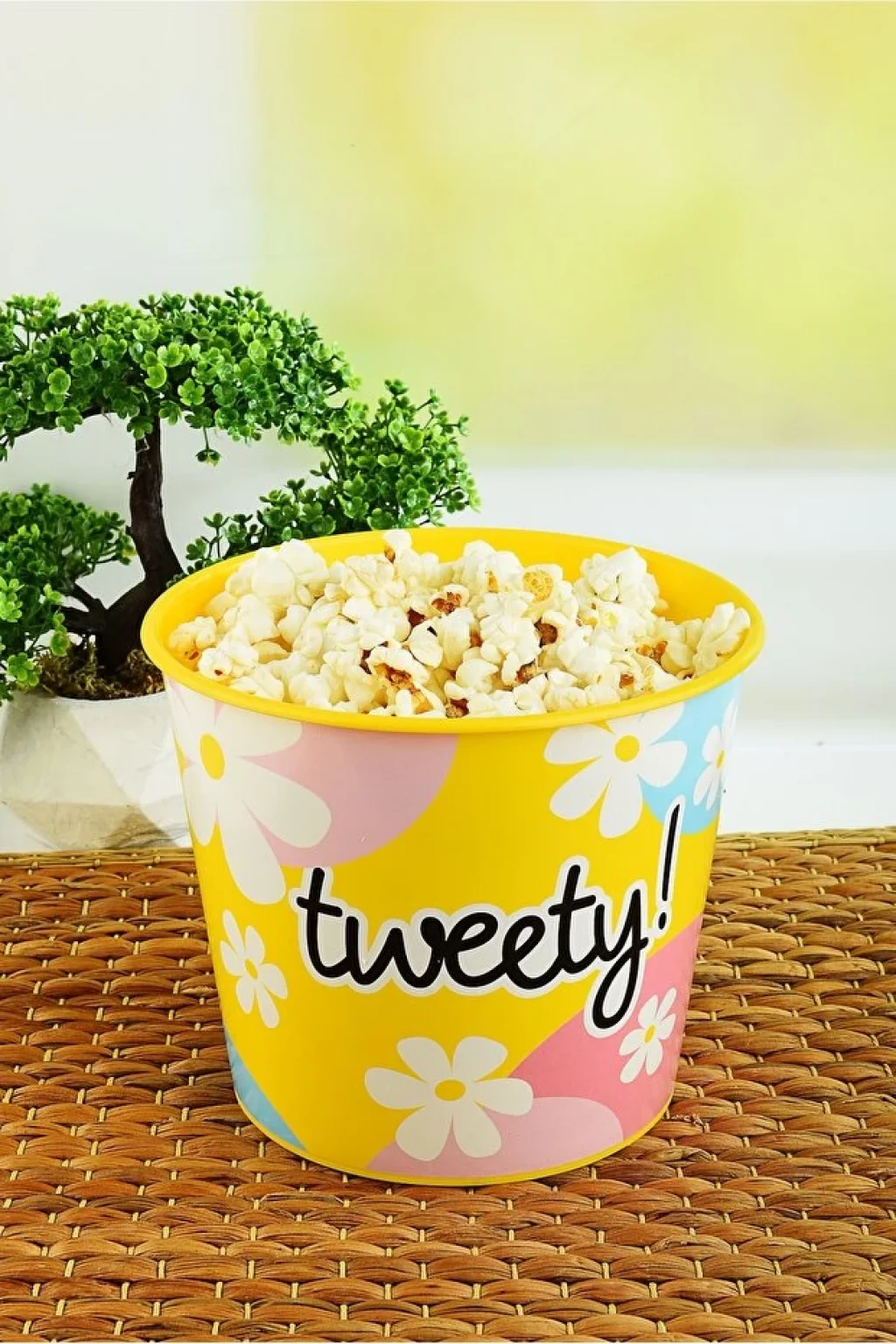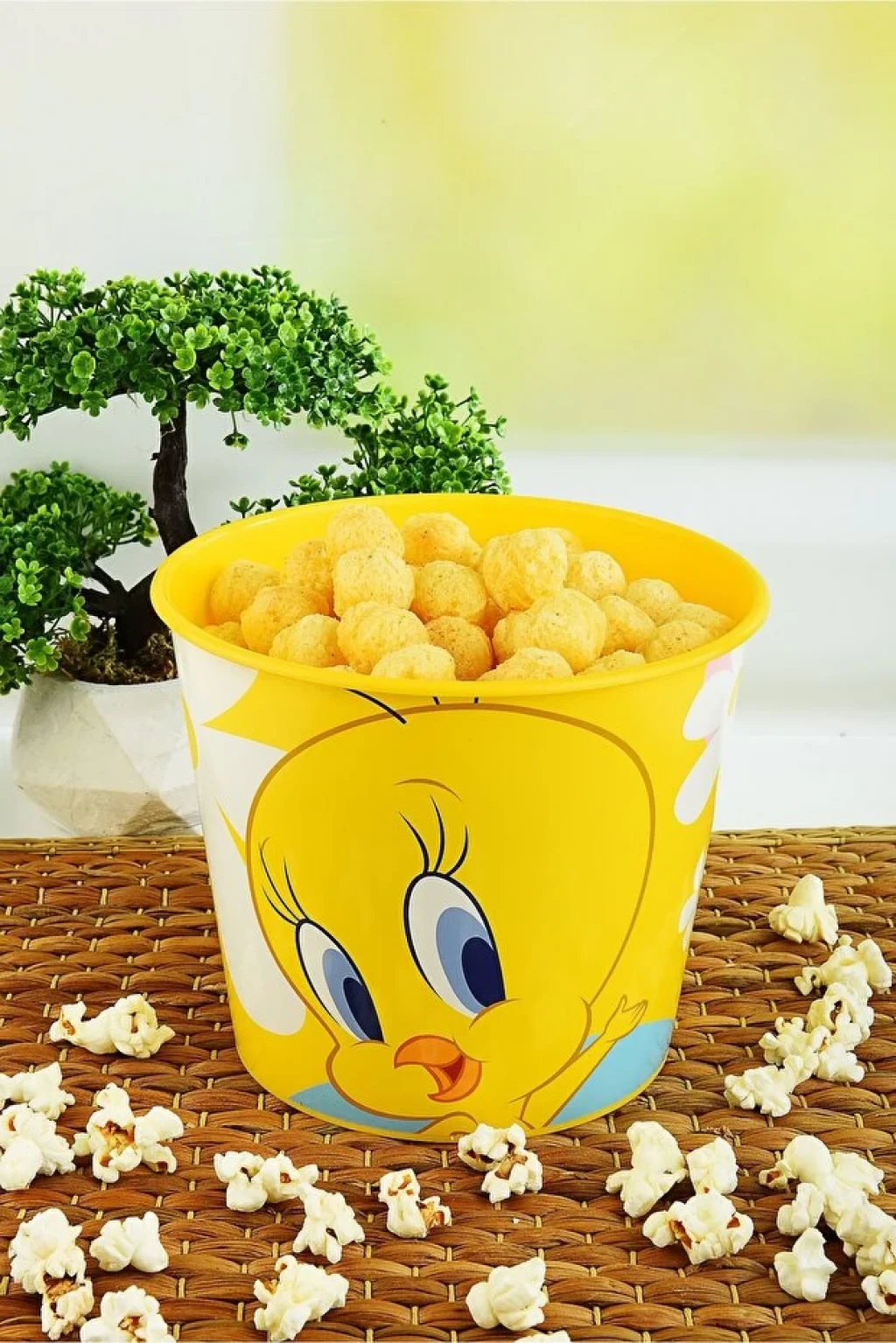 Şık ve eğlenceli Tweety tasarımı ile mısır ve popcorn keyfinizi artırır